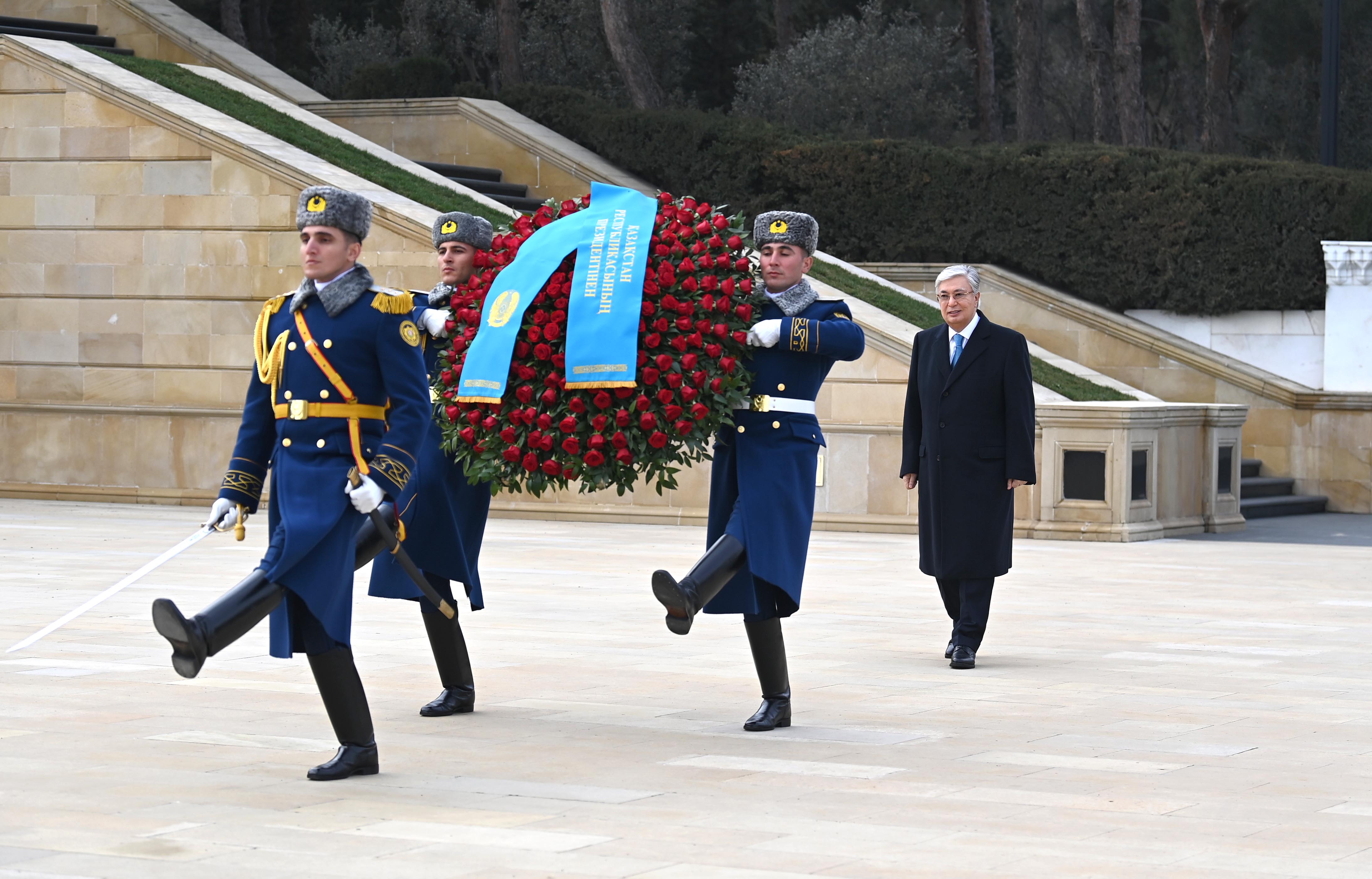 Находящийся с государственным визитом в Баку Президент Касым-Жомарт Токаев почтил память общенационального лидера Азербайджана Гейдара Алиева и возложил венок к его могиле.