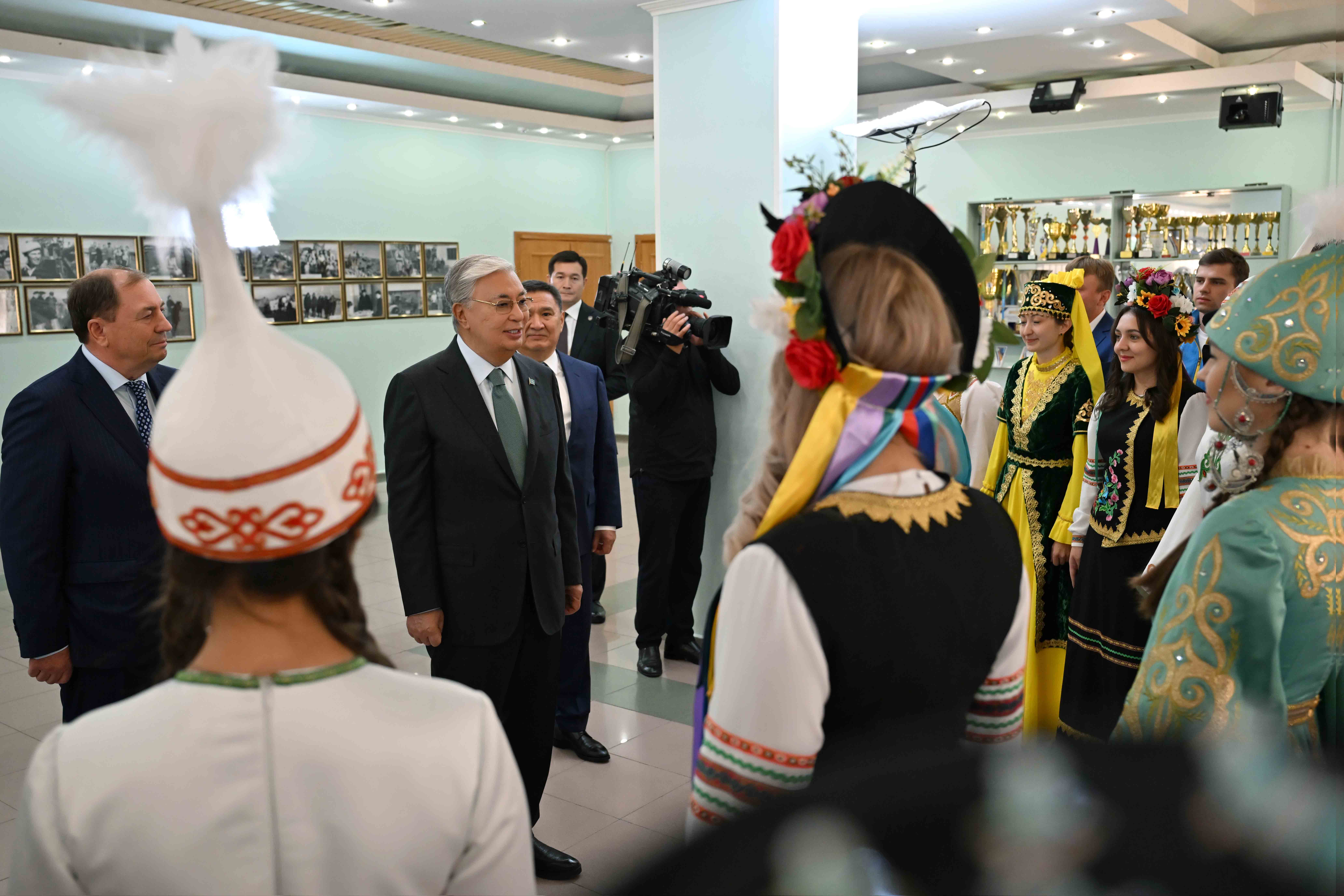 Рабочая поездка Главы государства в Акмолинскую область продолжилась посещением дома культуры в селе Родина.
