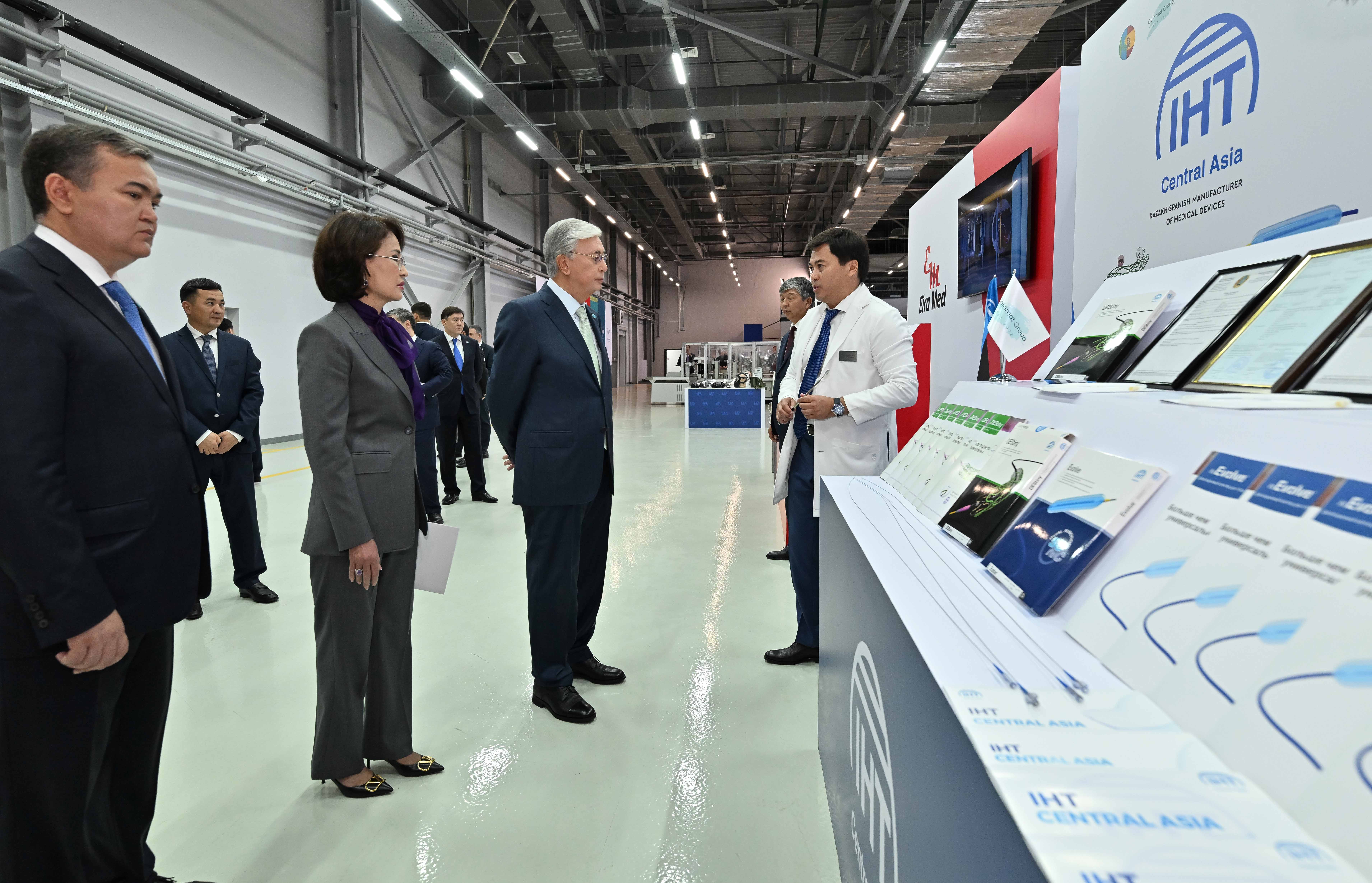 Осмотрев выставку, Касым-Жомарт Токаев отметил важность развития отечественной фарминдустрии и производства медицинских изделий.