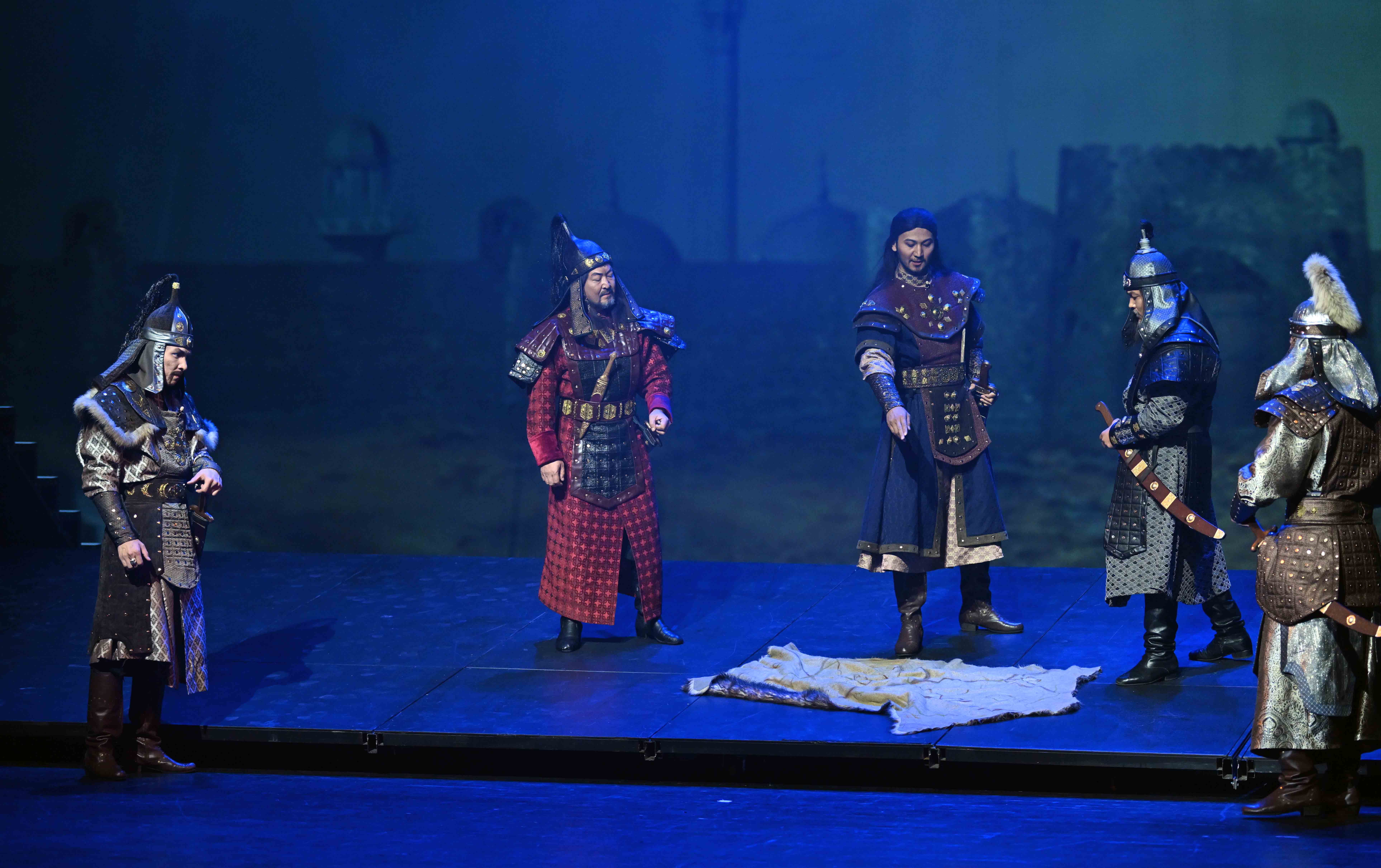 – Поздравляю! Очень замечательная постановка, и тема спектакля крайне актуальная. Подобные произведения очень важны для народа. В основе пьесы отличный сценарий, выразительный язык. Все артисты великолепно вжились в свои образы и передали их. Нам нужно прославлять нашу историю и культурные ценности. Некоторые высказываются будто у казахов не было своей истории, государственности. Это искажение нашей истории. Желаю вам творческих успехов, – сказал Глава государства.