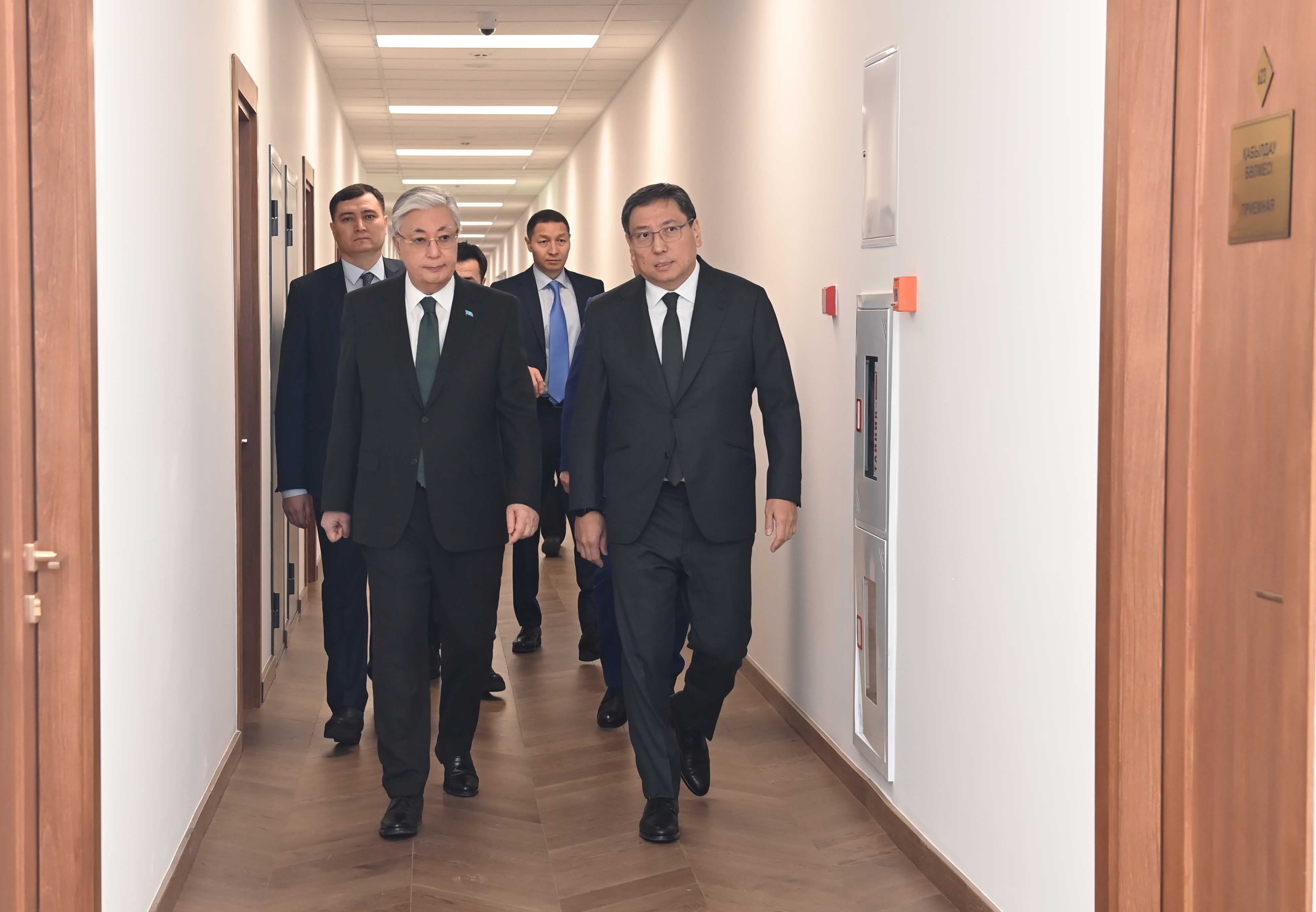 Программа рабочей поездки Главы государства в Алматы продолжилась посещением восстановленного здания городского акимата.