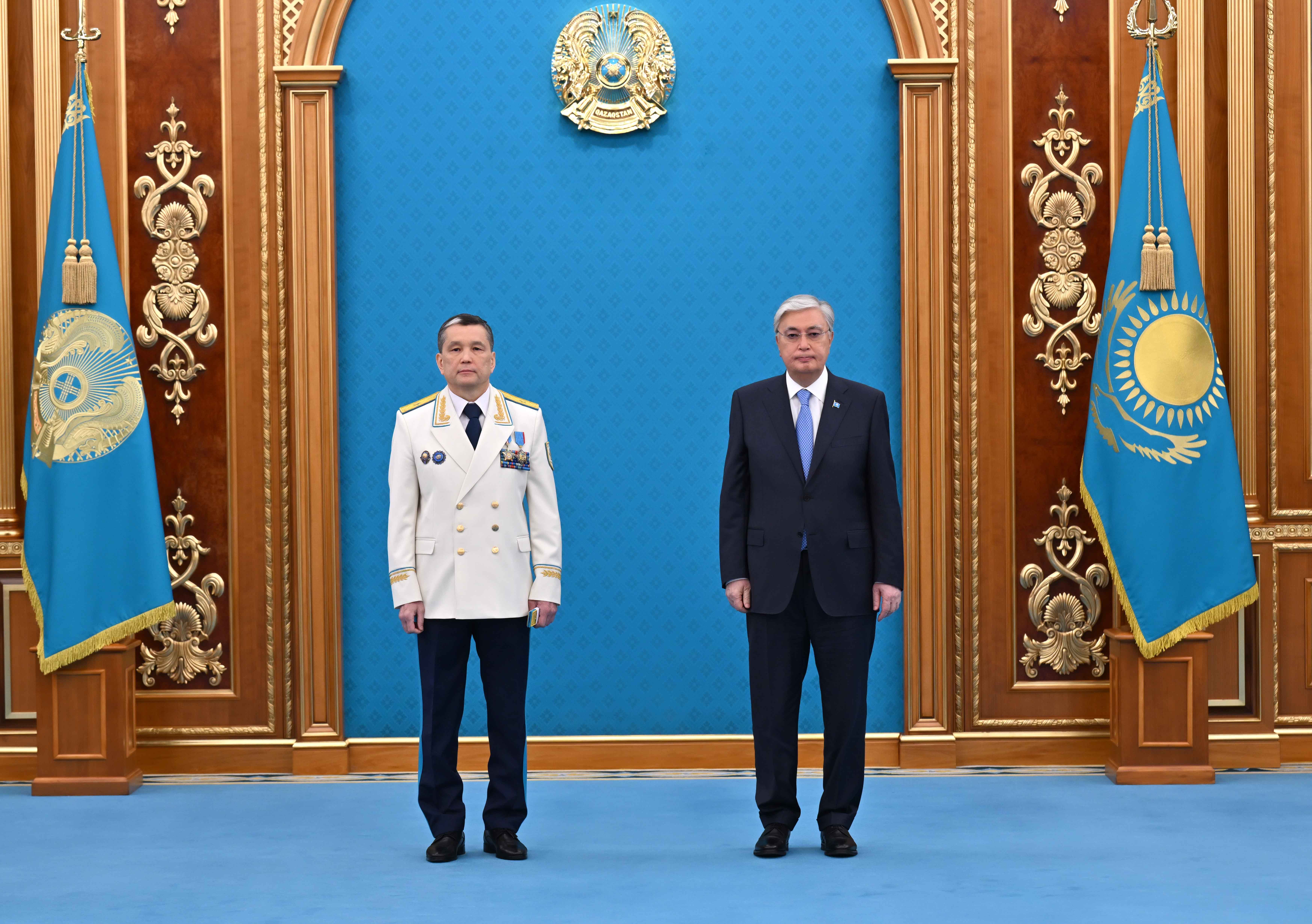 Касым-Жомарт Токаев также отметил государственными наградами ряд граждан за мужество и самоотверженность, проявленные при исполнении воинского и служебного долга, вклад в обеспечение национальной безопасности и обороноспособности страны, укрепление законности и правопорядка.