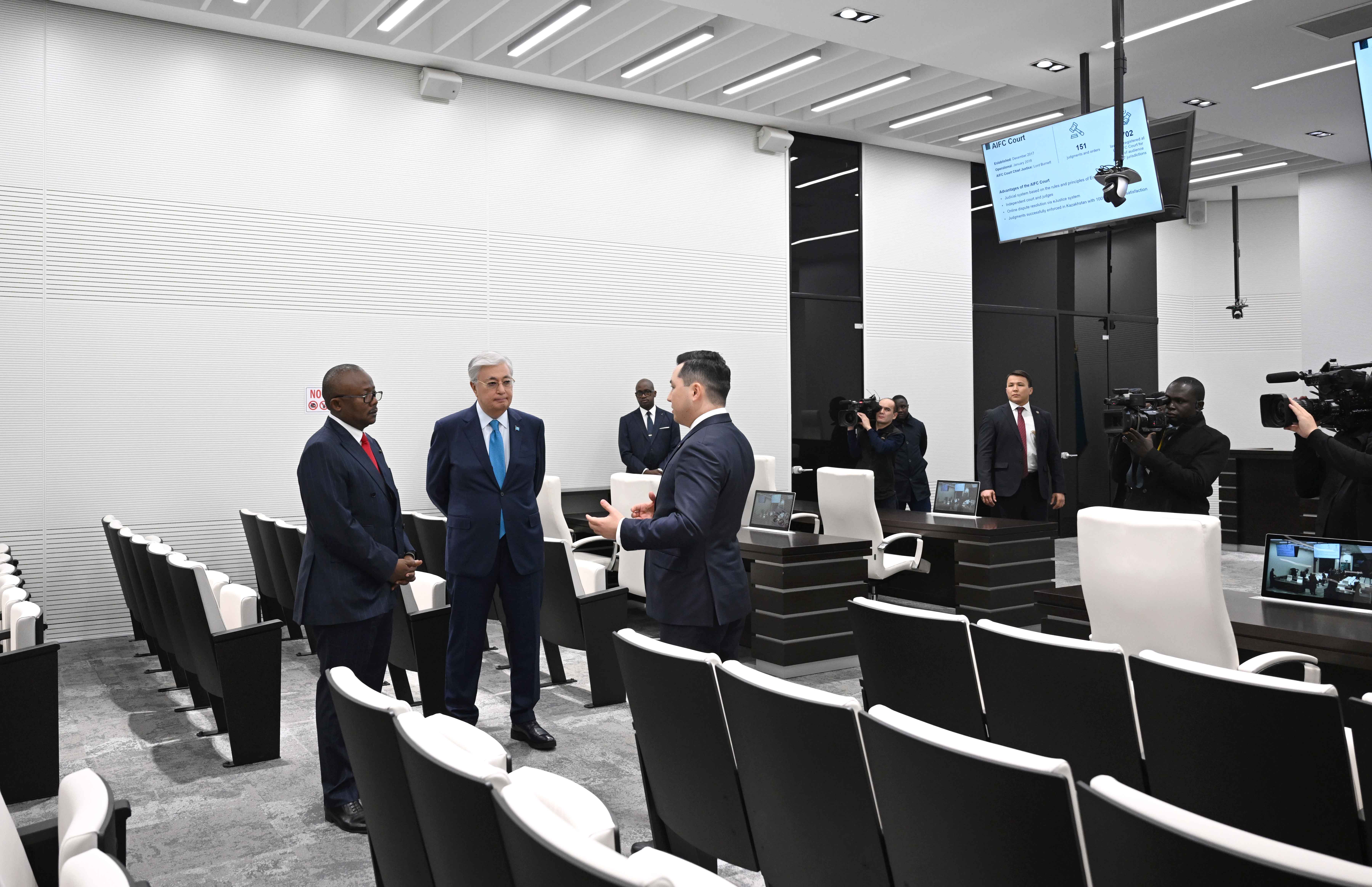 Президенты Казахстана и Гвинеи-Бисау были проинформированы о работе Суда МФЦА — первой в Центральной Азии судебной системы, основанной на нормах и принципах прецедентного права, а также о функционировании Международного арбитражного центра и Центра зеленых финансов. Главы государств также ознакомились с деятельностью Комитета МФЦА по регулированию финансовых услуг (AFSA) и особенностями регуляторного режима финансового центра.