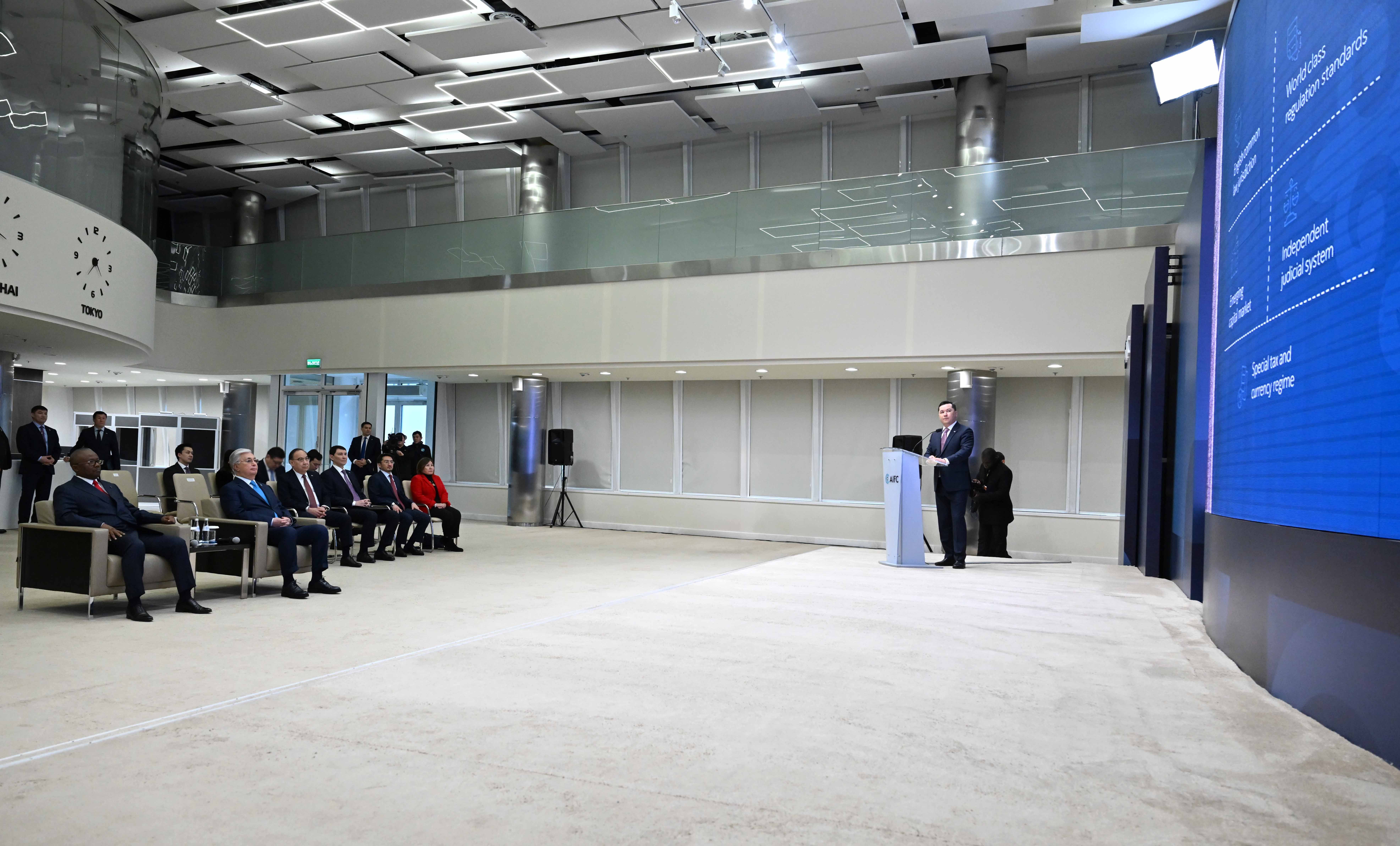 Глава государства Касым-Жомарт Токаев и Президент Республики Гвинея-Бисау Умару Сисоку Эмбало, находящийся с официальным визитом в Казахстане, посетили Международный финансовый центр «Астана» (МФЦА).