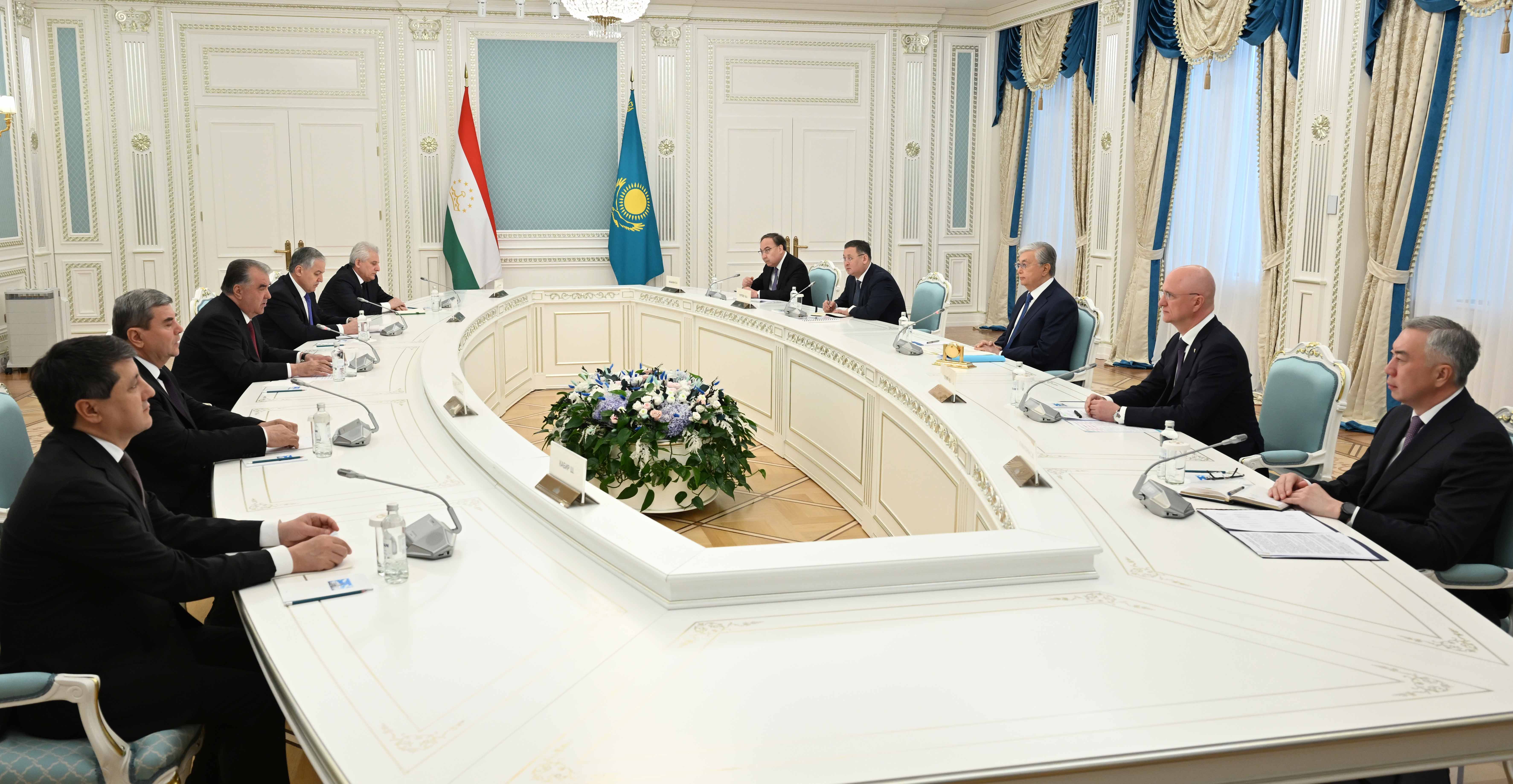 Переговорам предшествовала официальная церемония встречи в резиденции «Акорда». Касым-Жомарт Токаев и Эмомали Рахмон представили друг другу членов официальных делегаций. Начальник роты почетного караула отдал приветственный рапорт лидерам двух стран, прозвучали государственные гимны Казахстана и Таджикистана. Затем состоялась встреча глав государств в узком составе.