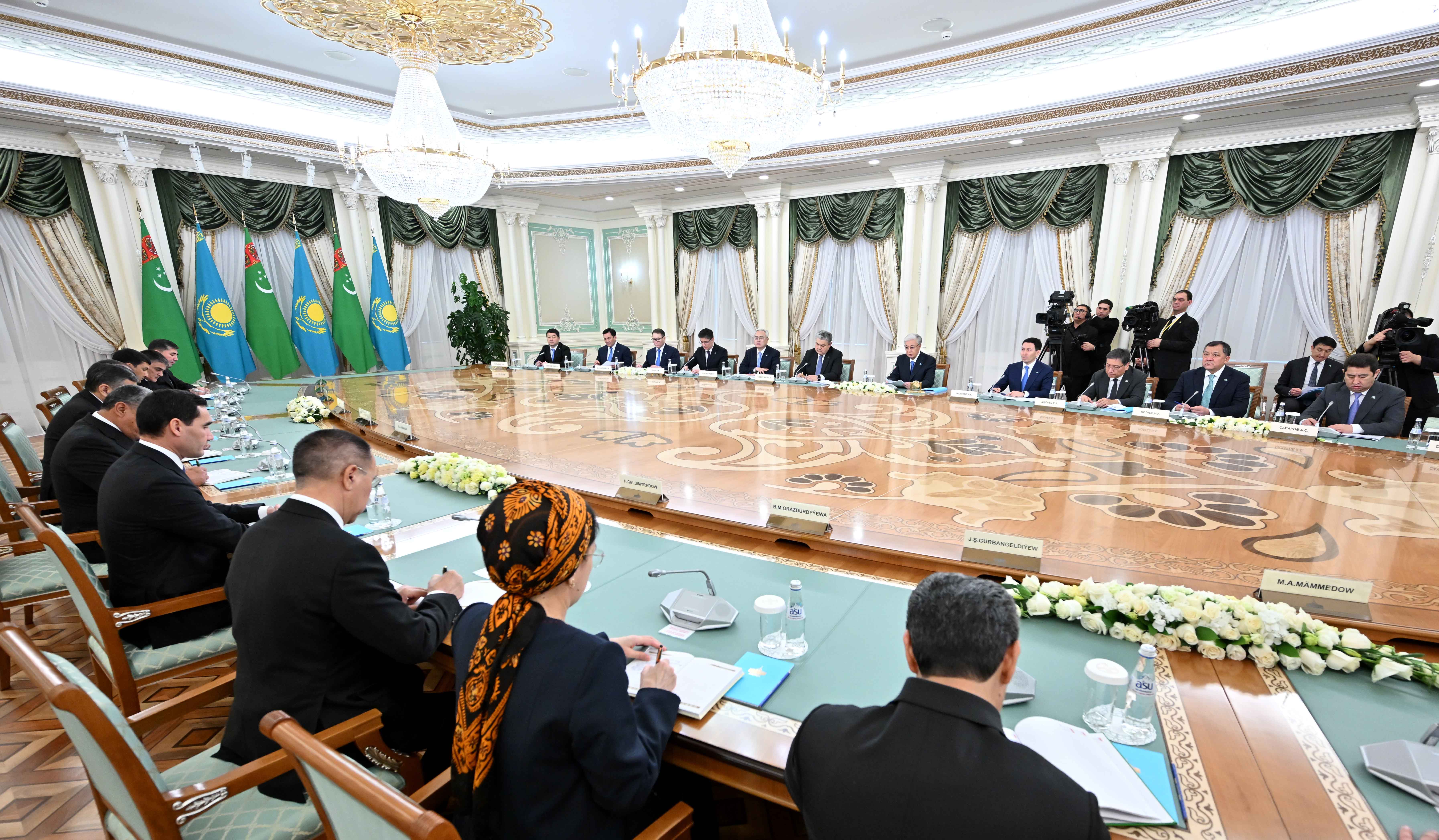 – Казахи и туркмены издавна являются родственными народами, связанными крепкими узами дружбы. Нас объединяют общая история, созвучные стремления и близкие культурно-духовные ценности. Мы придаем особое значение всестороннему развитию сотрудничества с Туркменистаном в духе добрососедства и взаимной поддержки. Совместными усилиями мы готовы уверенно двигаться к светлому будущему. Убежден, что стратегическое партнерство будет и дальше укрепляться во благо наших братских народов, – заявил Глава государства.