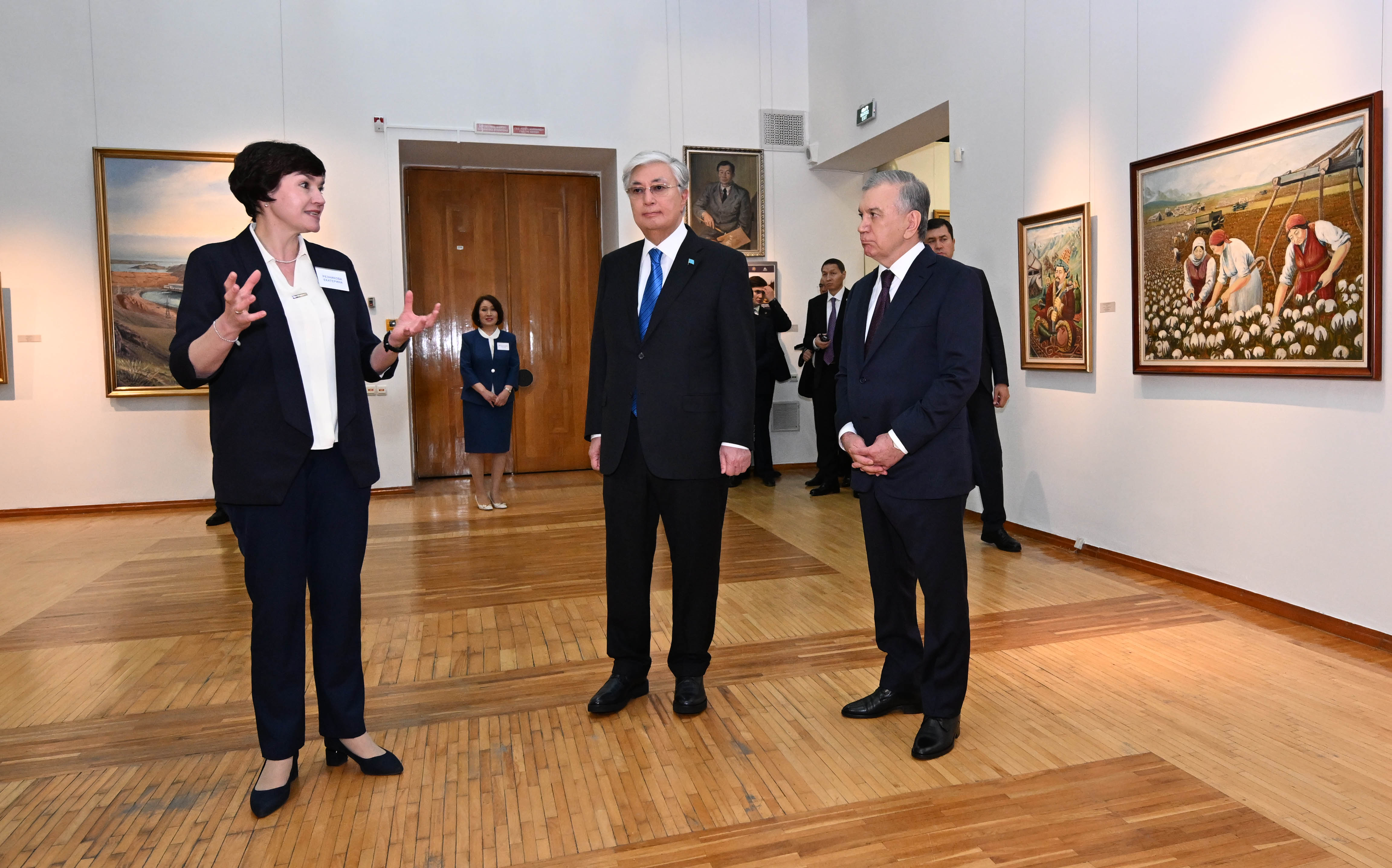 Президенты Казахстана и Узбекистана осмотрели выставку картин Абылхана Кастеева и Урала Тансыкбаева