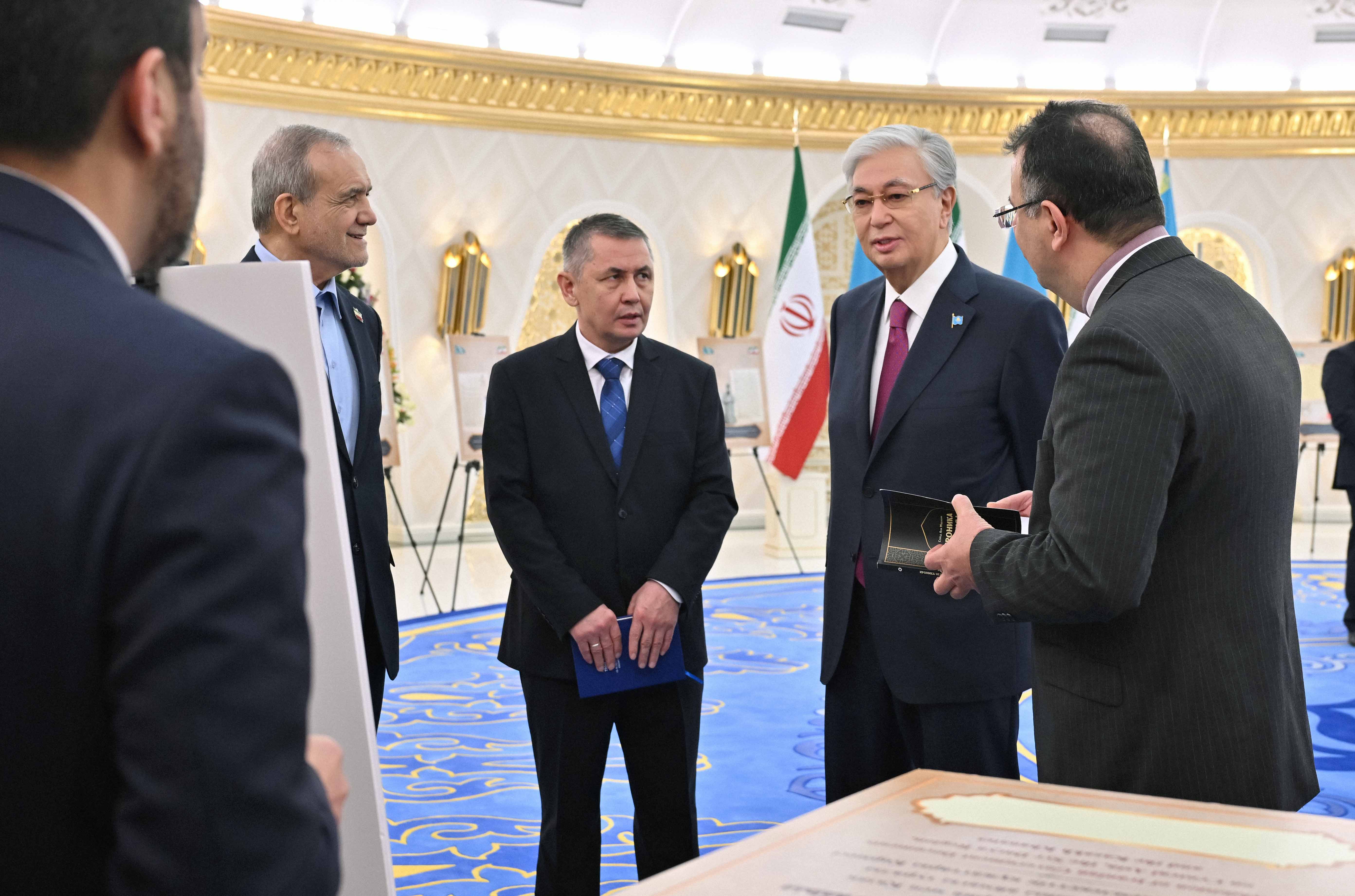 Касым-Жомарт Токаев и Масуд Пезешкиан ознакомились с копиями 27 древних рукописей из архивов министерства иностранных дел Исламской Республики Иран.