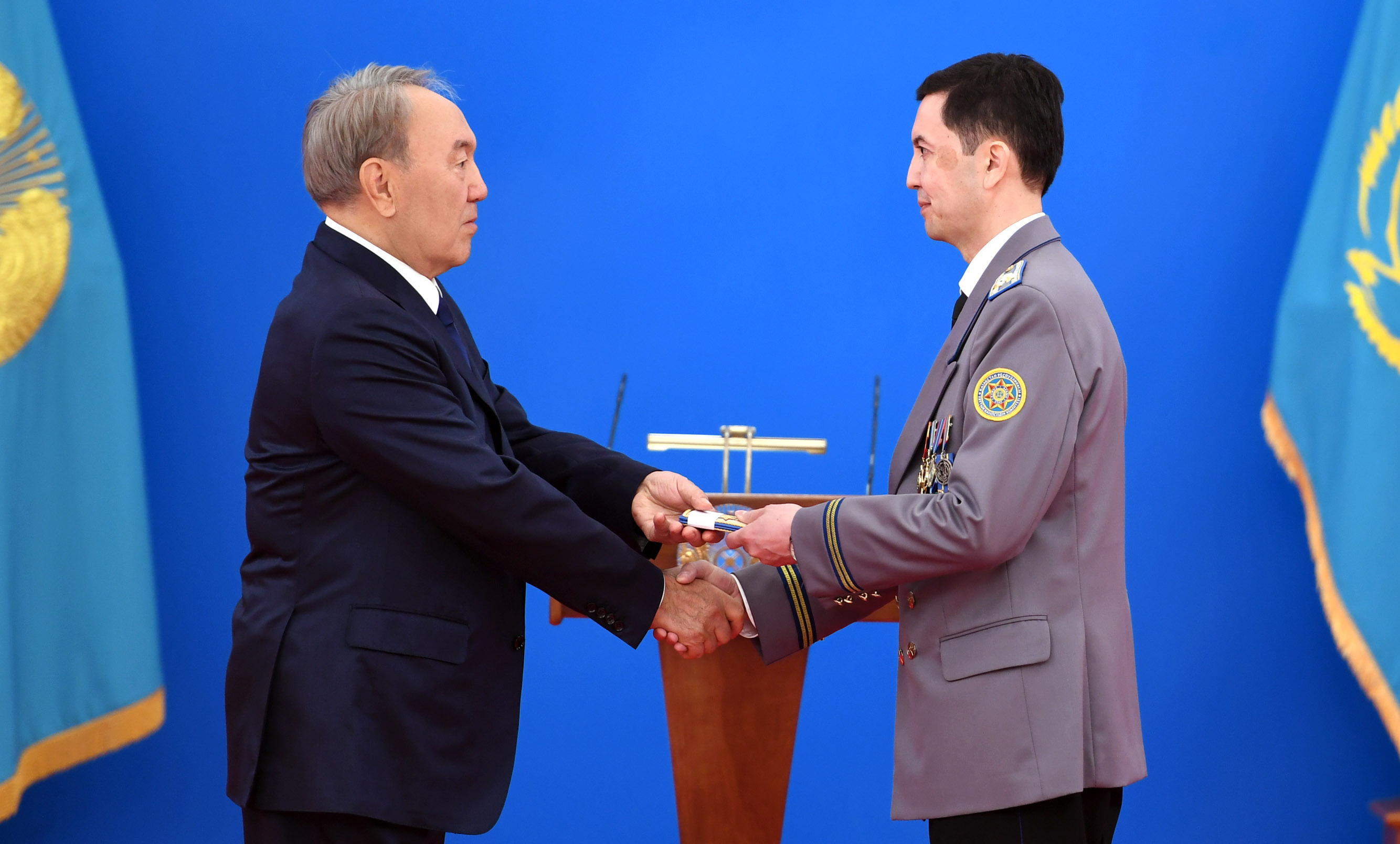 - Our army and law enforcement structures are a reliable shield for the country's security and an unshakable guarantor of its sovereignty. The state highly values your courage and selfless labour for the benefit of the peaceful life and tranquillity of all Kazakhstanis, Nursultan Nazarbayev said.