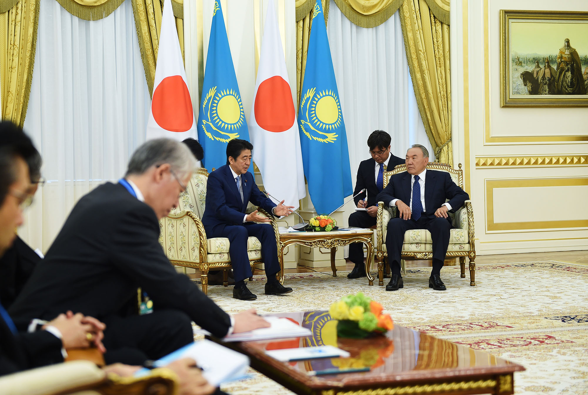 Meeting with Prime Minister of Japan Shinzo Abe, paying an official visit to Kazakhstan