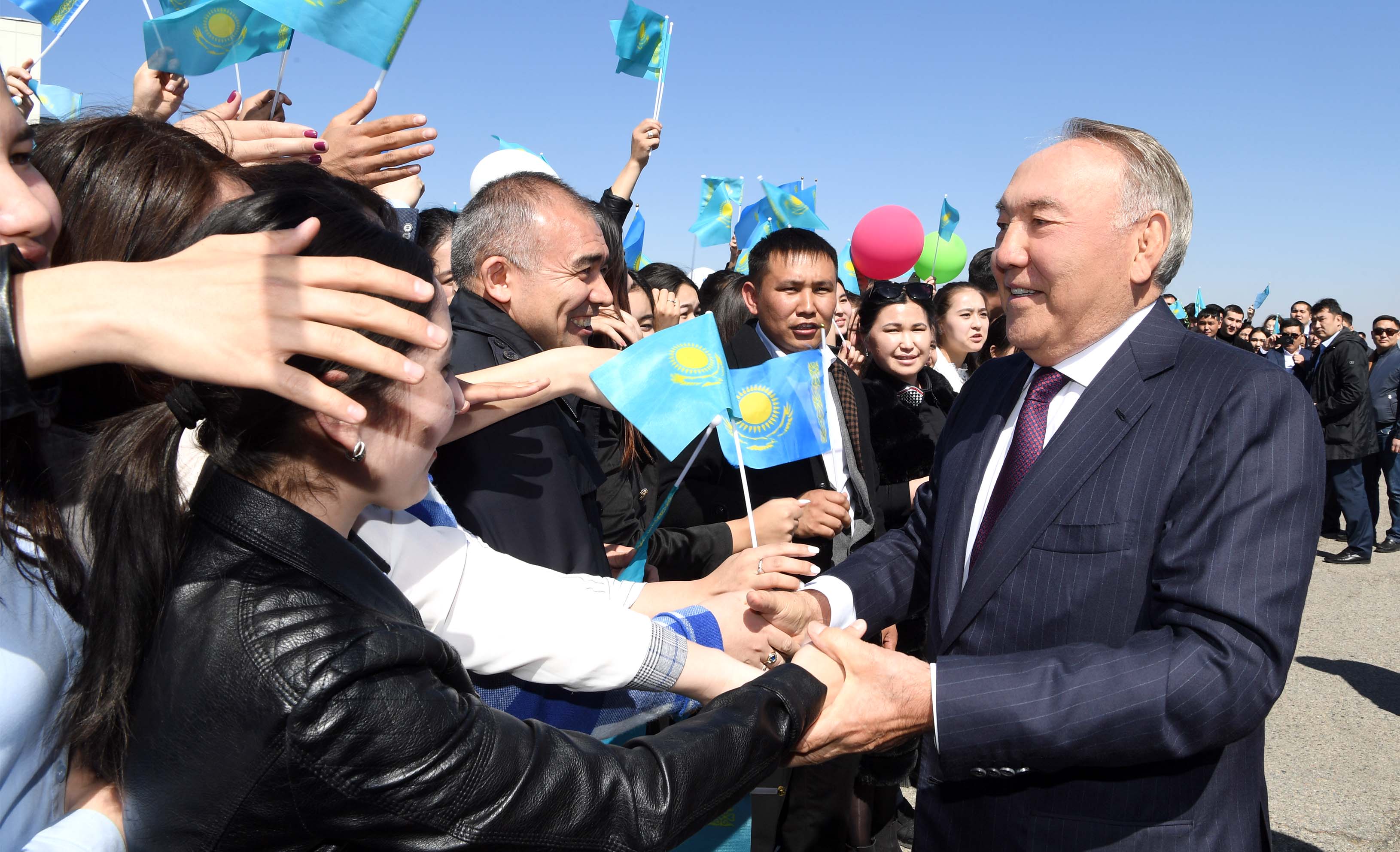 Descending from the ramp, Nursultan Nazarbayev personally thanked the youth for the unexpected and warm welcome.