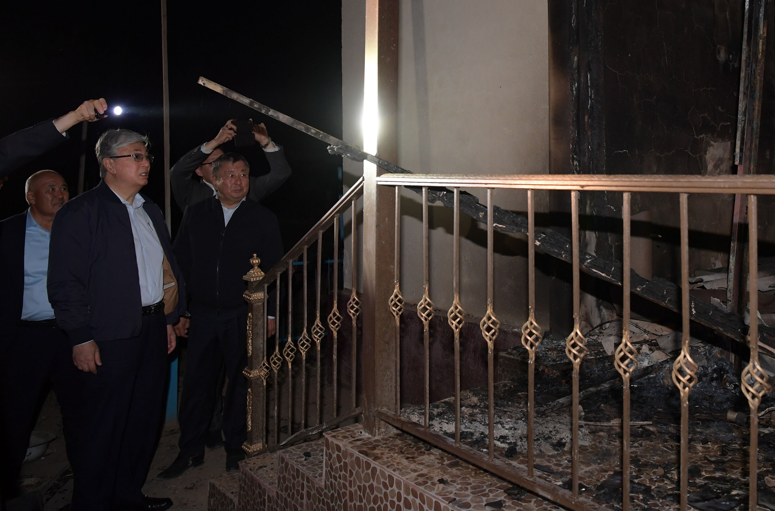 During the detour of Arys town, Kassym-Jomart Tokayev inspected residential buildings and administrative facilities most affected by the explosions at the ammunition depot.