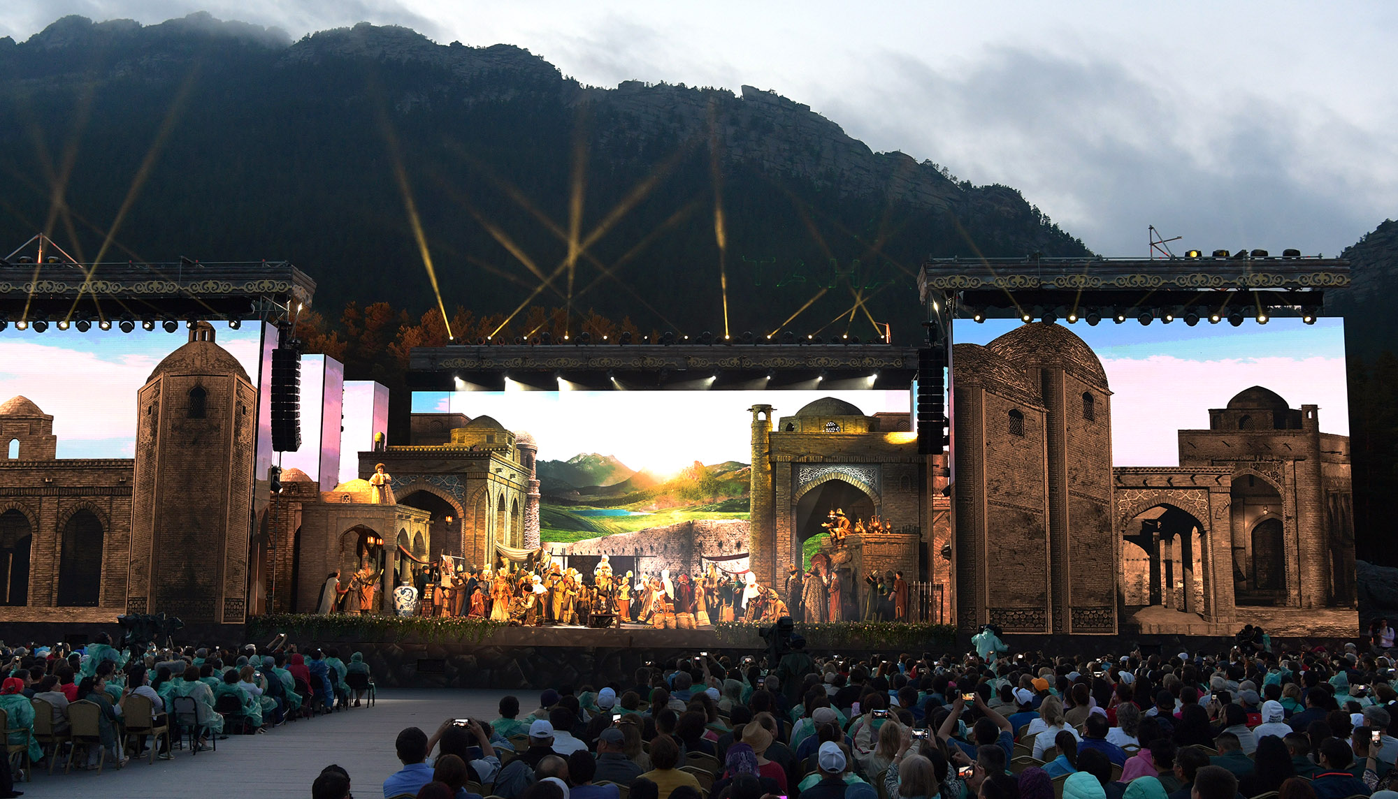The Head of State visited the Birzhan Sara opera play by the composer M. Tulebayev, which took place in the open air within the territory of Burabay resort.