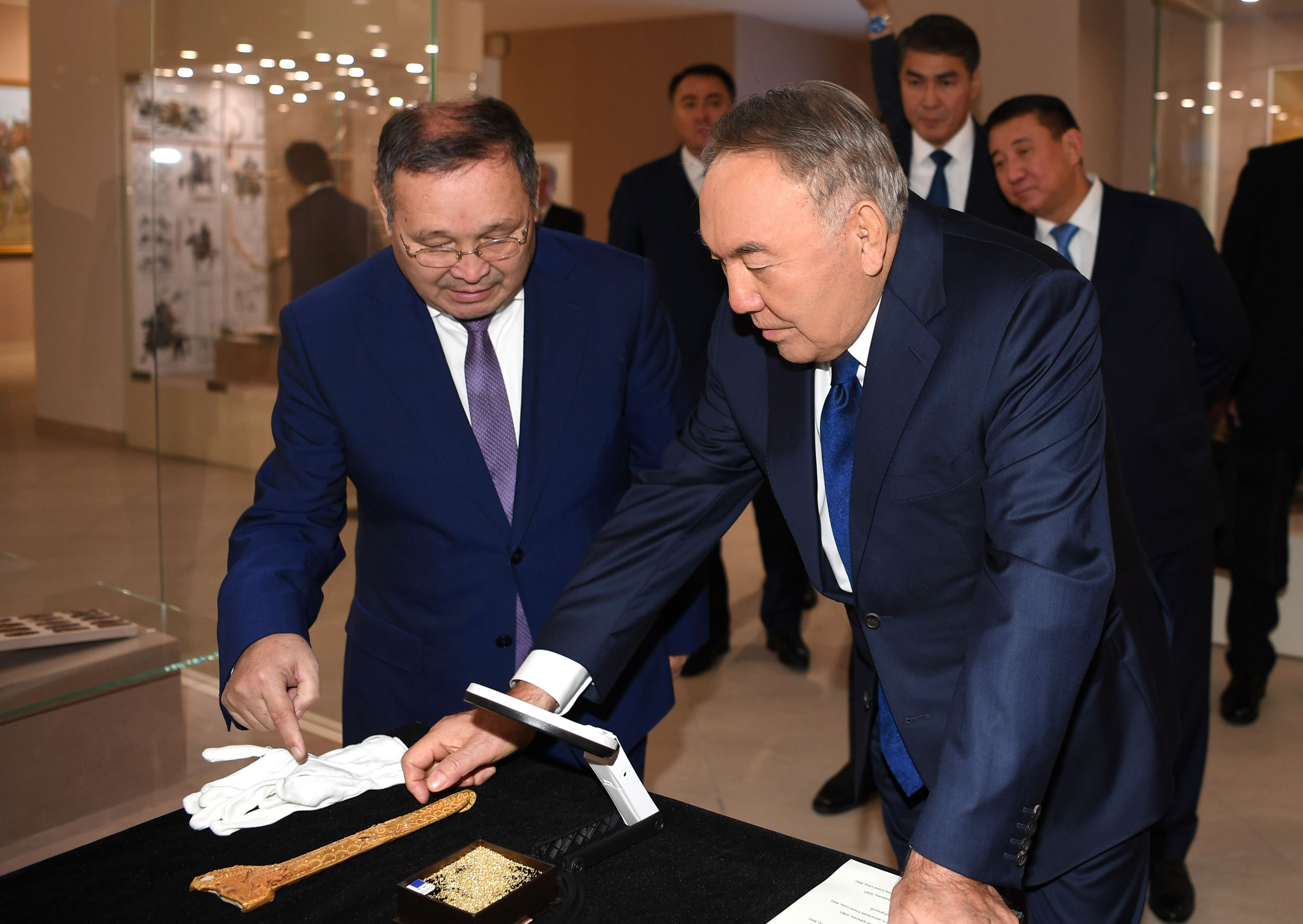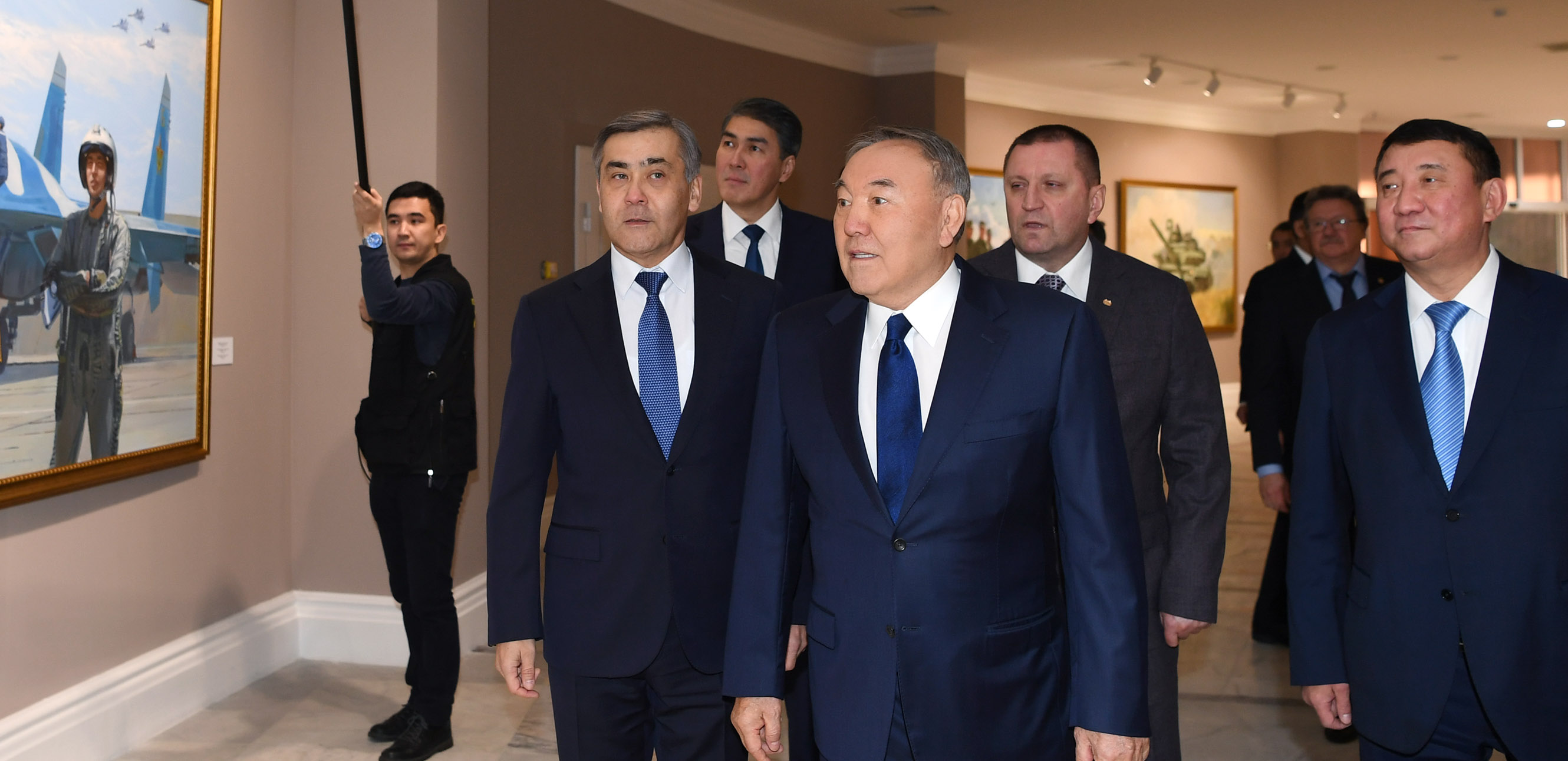 Before the event, Nursultan Nazarbayev familiarized himself with the expositions of the Centre’s museum, including paintings by the studio of military artists devoted to Kazakhstan’s Army, the Orbulak Battle diorama and the projection exhibition using 3D-mapping show.