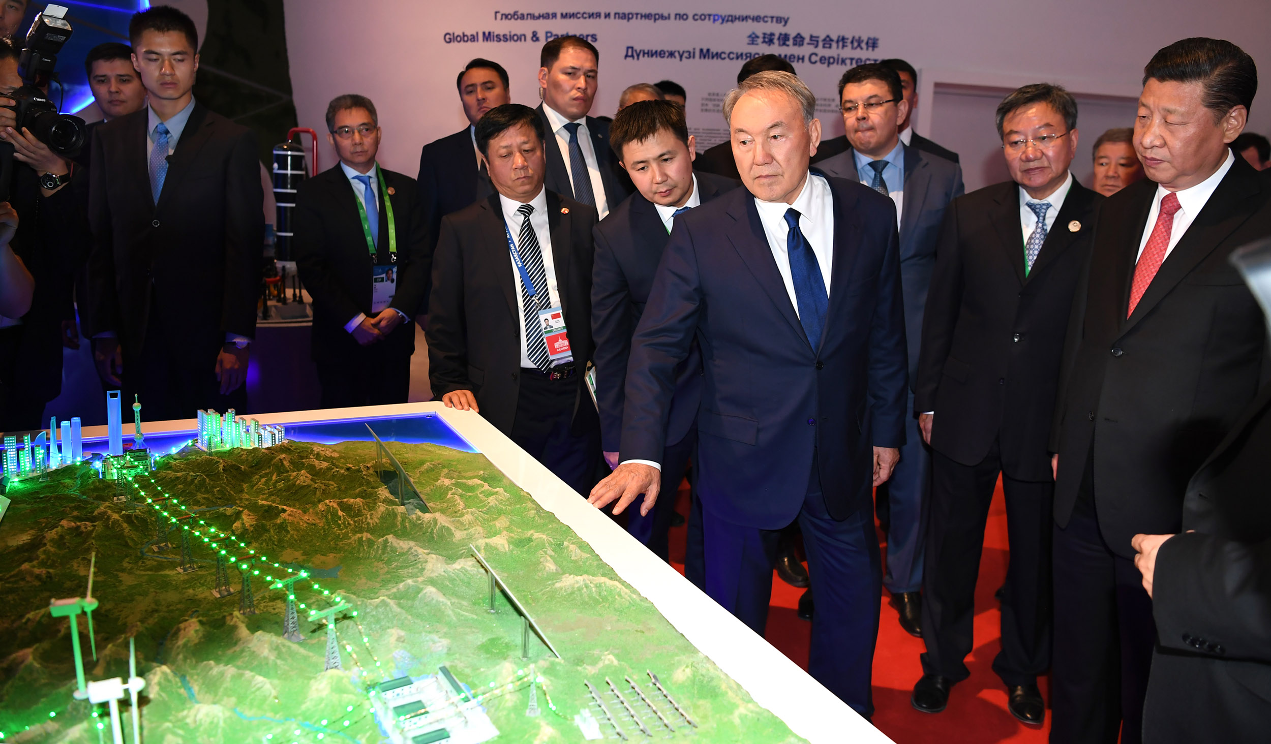 During the visit to the exhibition pavilion of the People's Republic of China Nursultan Nazarbayev and Xi Jinping took part in "Kazakhstan and China, Transit Bridge of Eurasia" space bridge.