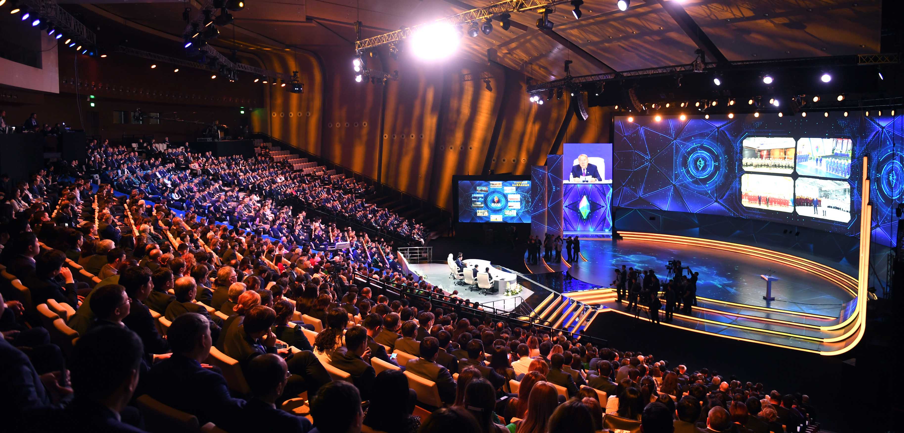 In addition, Nursultan Nazarbayev noted the importance of infrastructure development in the context of economic diversification and told the audience about the launch of the multimodal Eurasian transport corridor within the Nurly Zhol Program and the completion of constructing the international transit corridor "West Europe - West China"