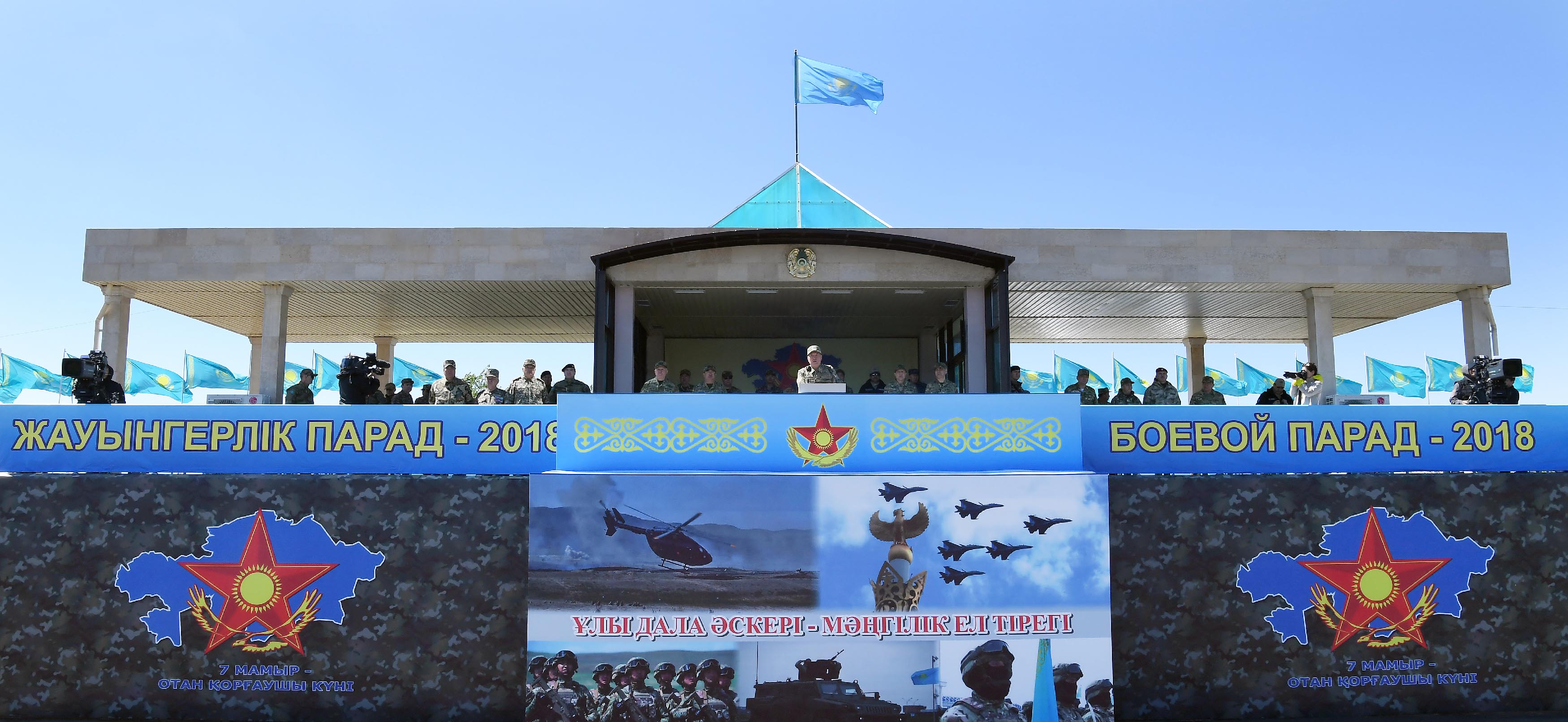 - The battle parade has become a real demonstration of the level of your military skill and coherence in the field. I am confident that holding the parade will serve to further increase the professionalism and combat readiness of the Armed Forces of Kazakhstan. I congratulate you all on the Day of the Fatherland Defender and the coming Victory Day!, Nursultan Nazarbayev said.