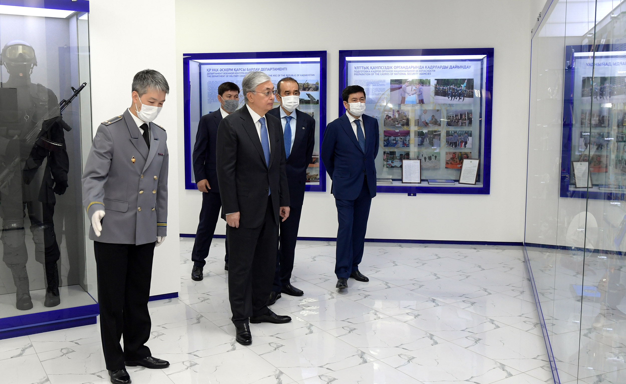 Prior the meeting, President Tokayev laid flowers at the memorial stele commemorating the National Security Committee officers who died in the line of duties. He also viewed the exposition of the NSC central office’s museum, which was reconstructed in 2017, and covers the history of the Committee’s development since Independence.