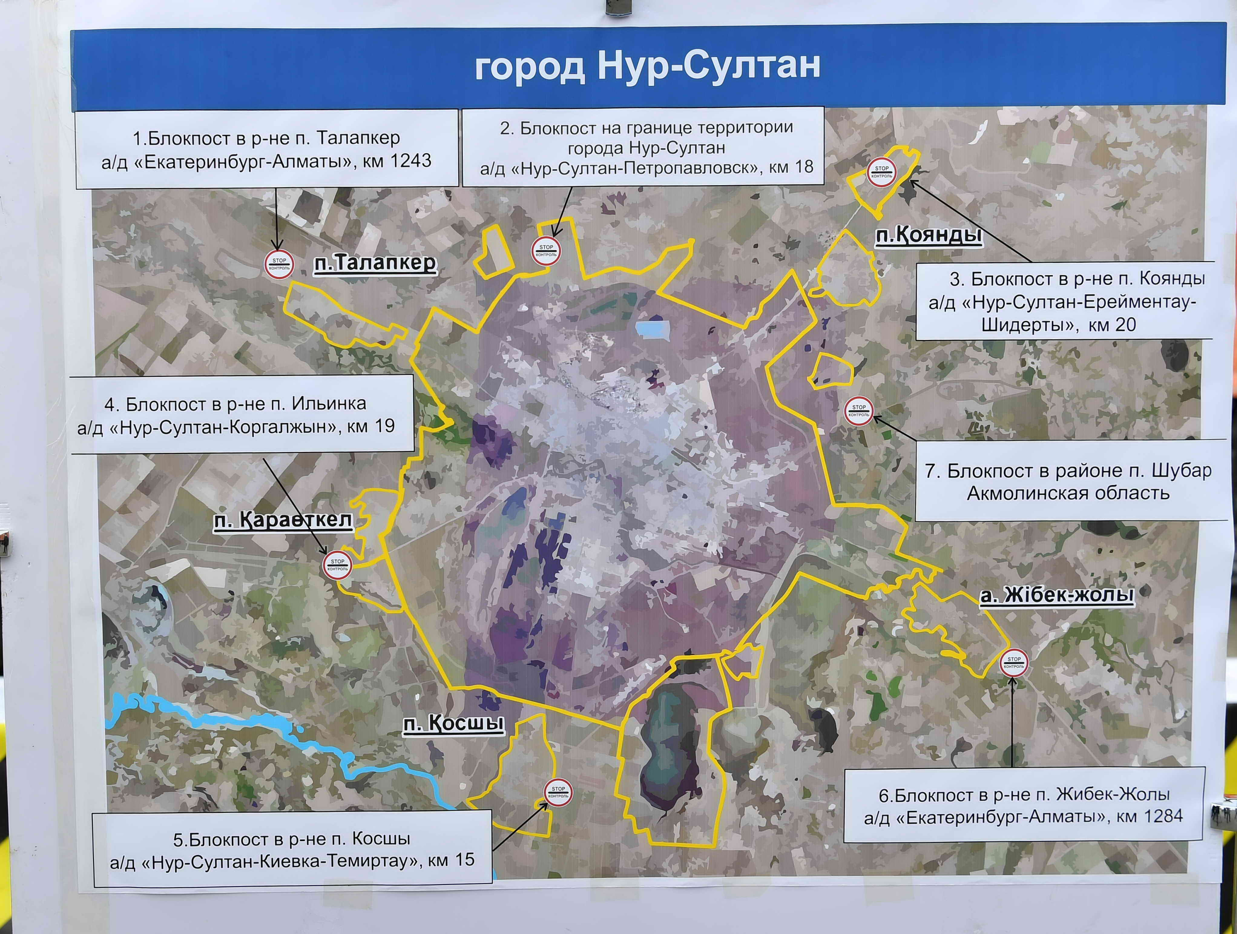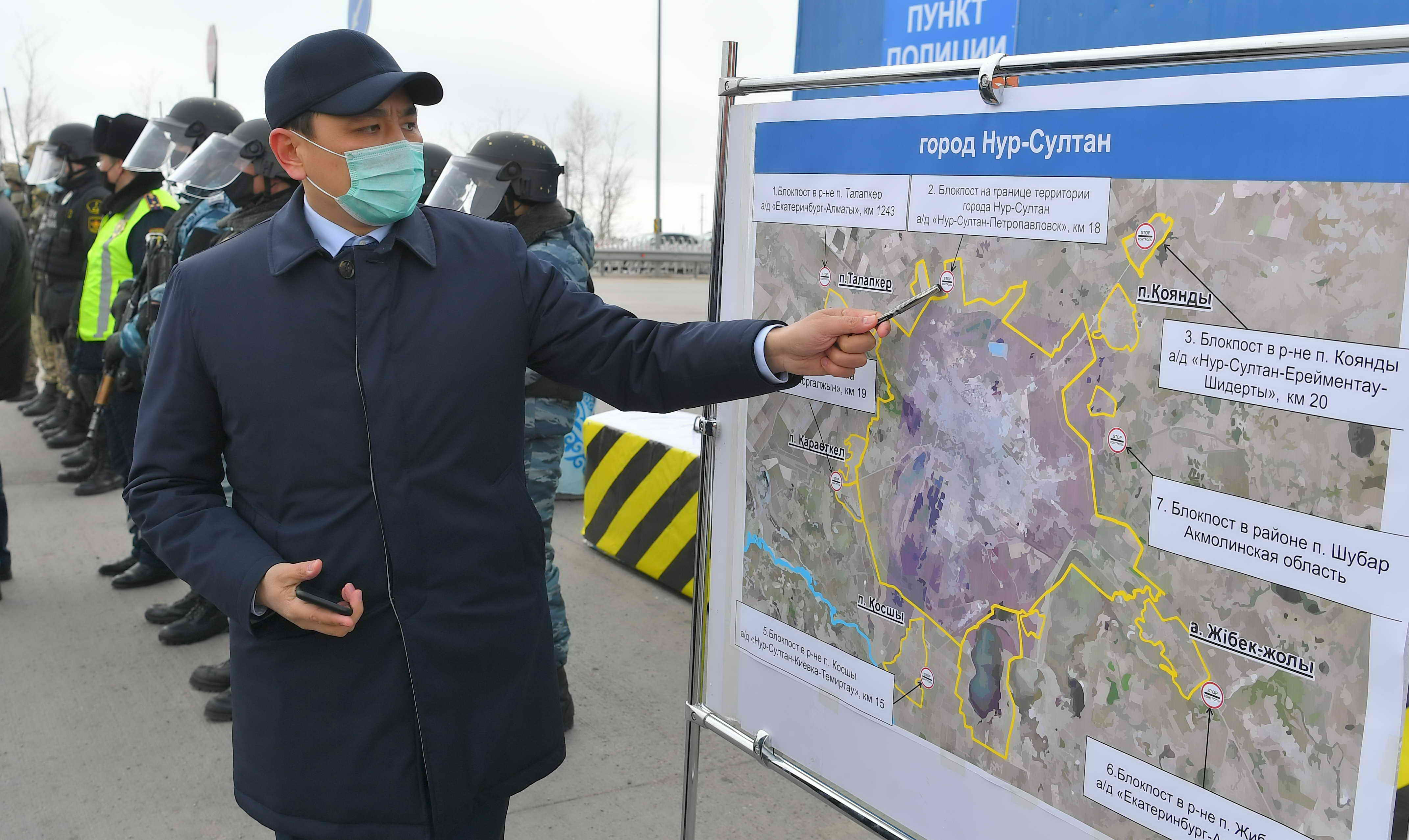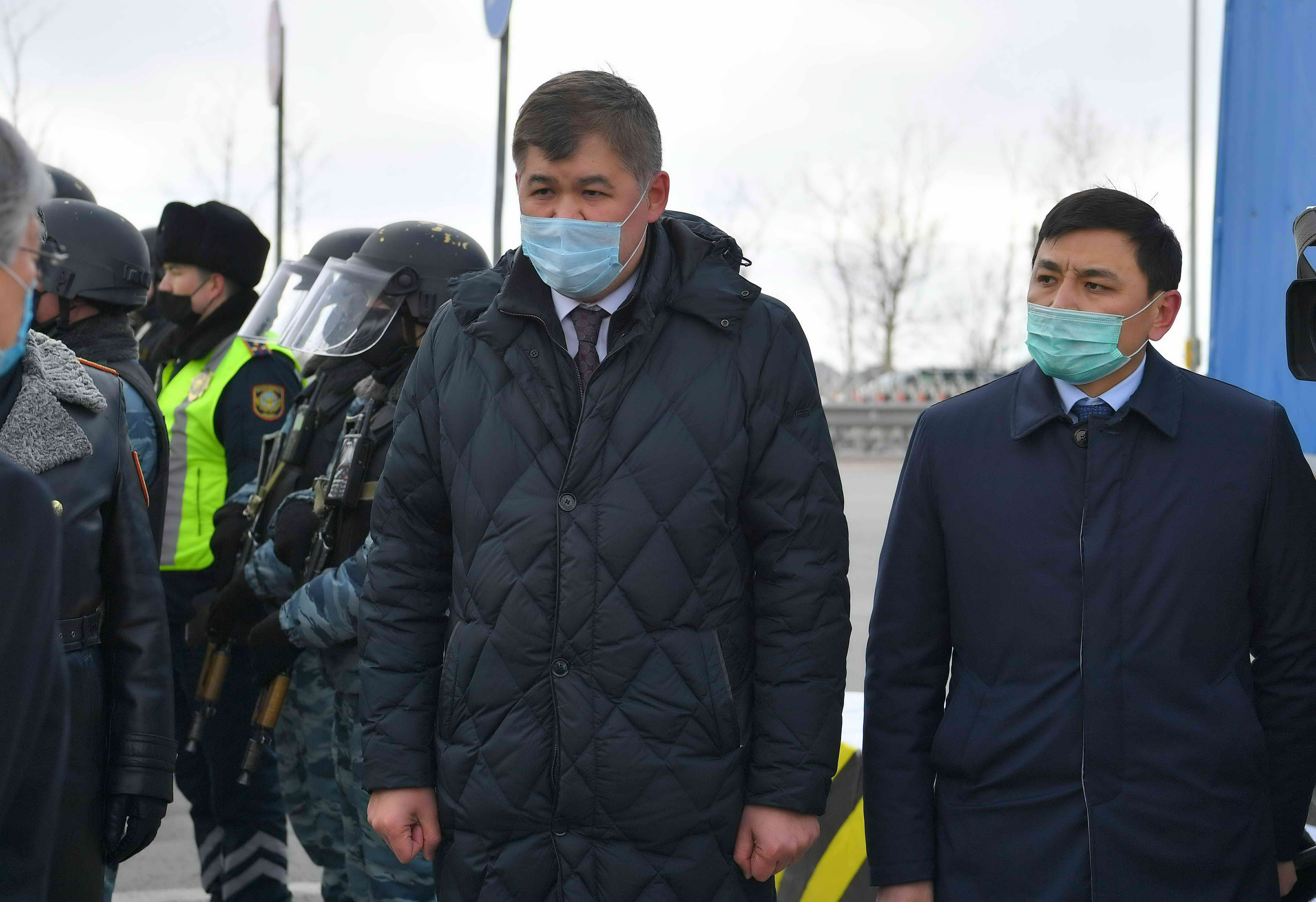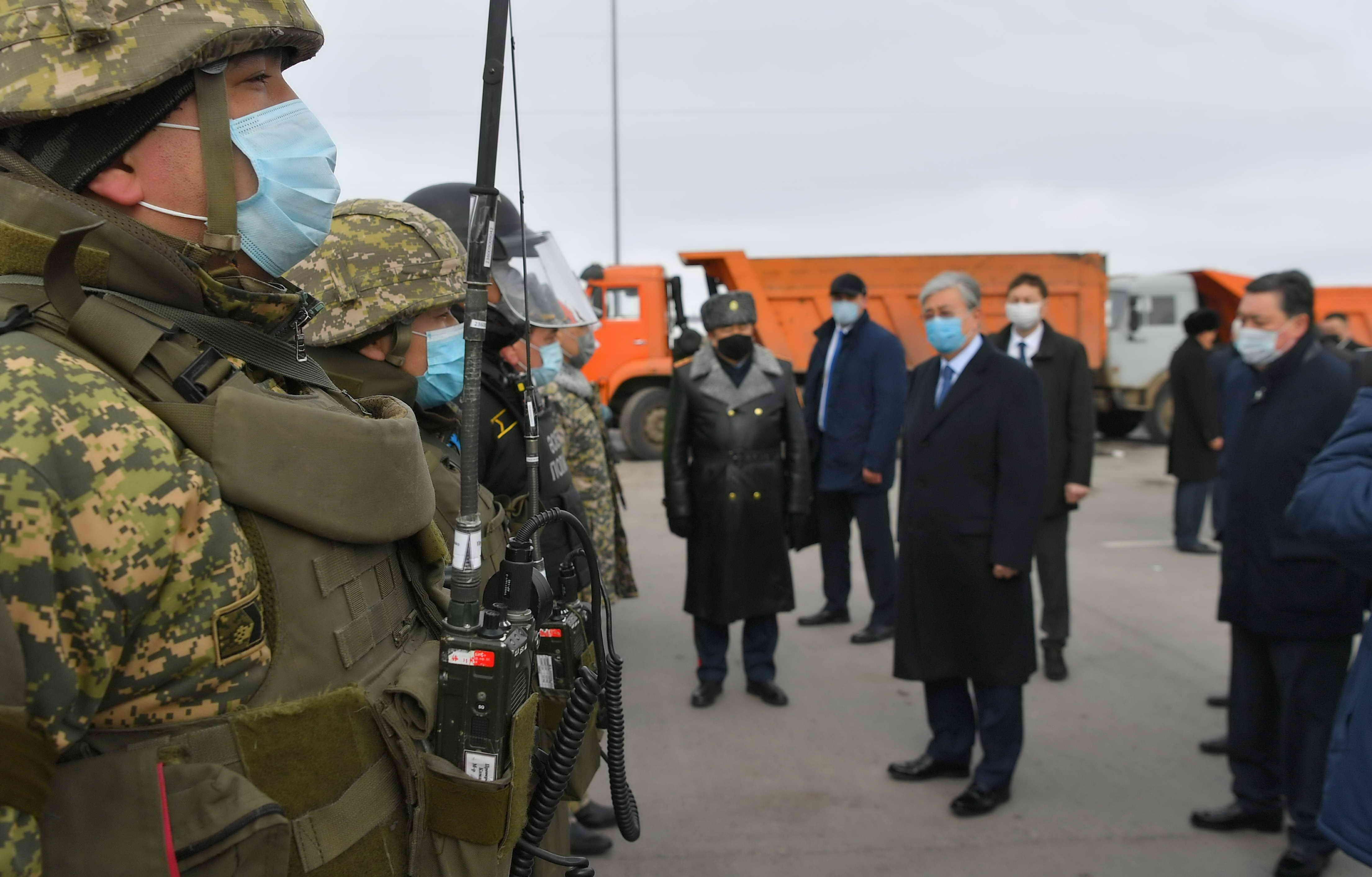 Kassym-Jomart Tokayev inspected the checkpoint No.6 located near the village of Zhibek Zholy, which was established in connection with the introduction of a state of emergency in the country and quarantine in the capital due to the COVID-19 pandemic.