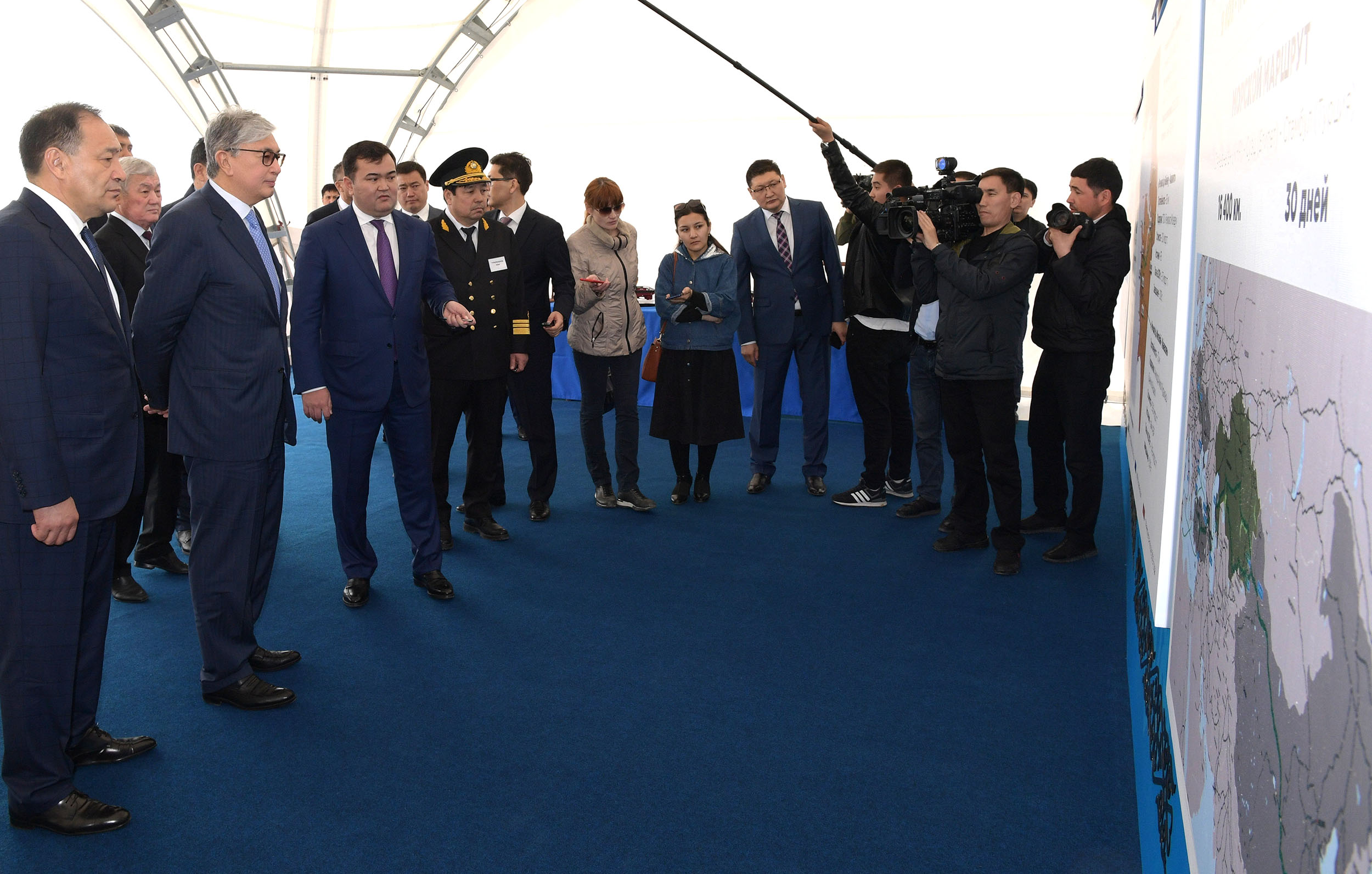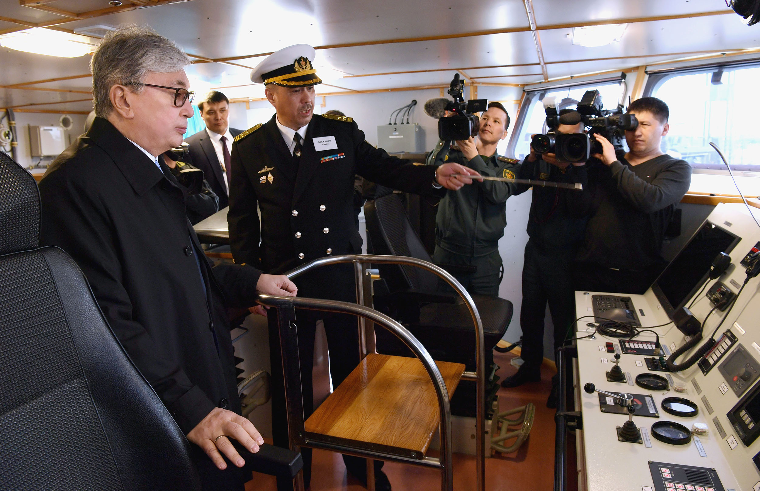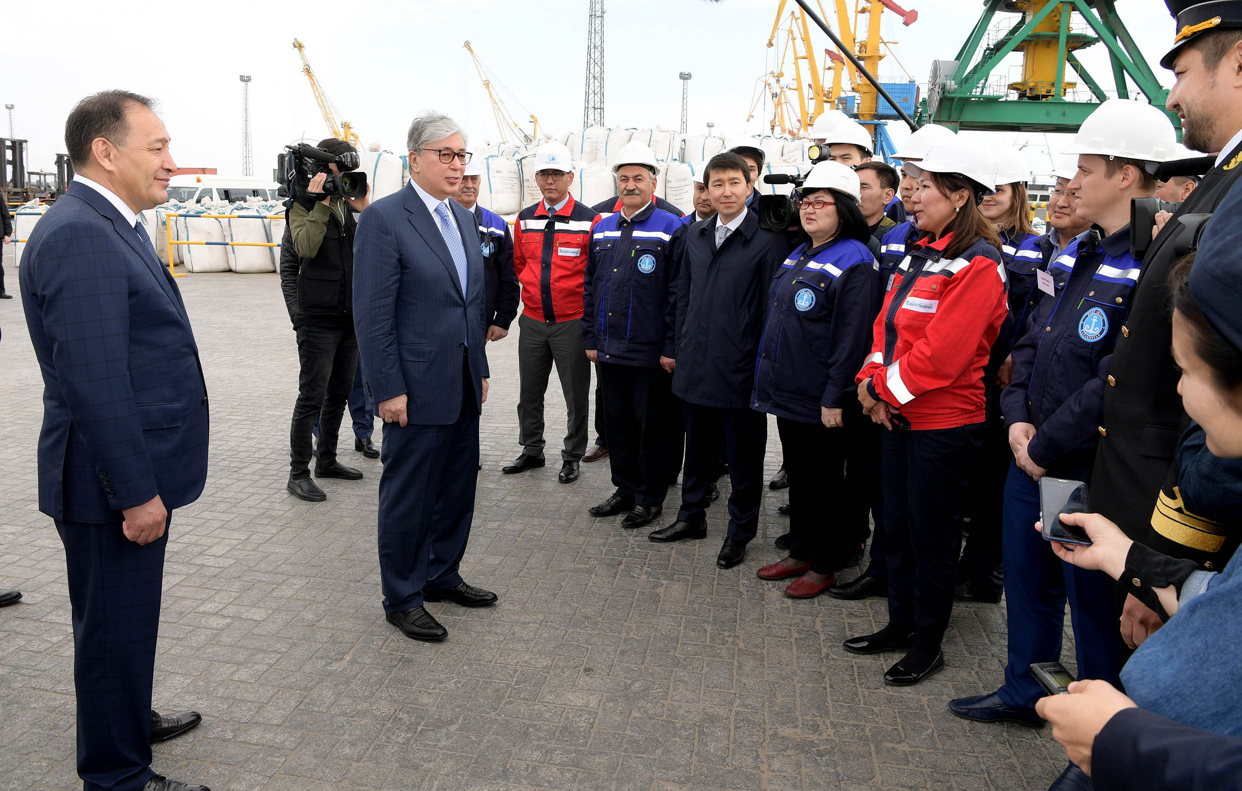 Kassym-Jomart Tokayev became familiar with the port’s technical capabilities, which allow it to fully carry out production tasks, including cargo operations, parking and maintenance of vessels.