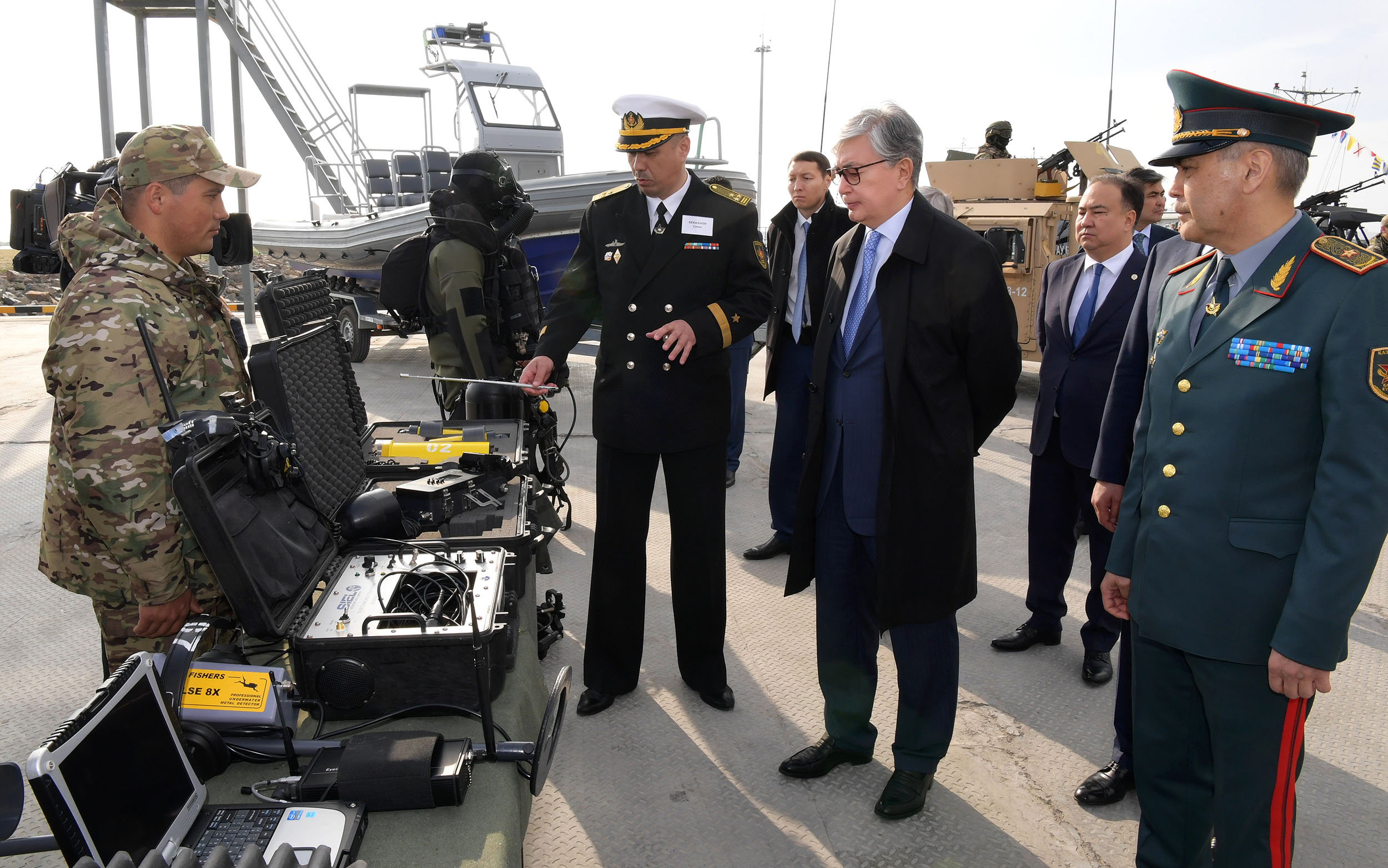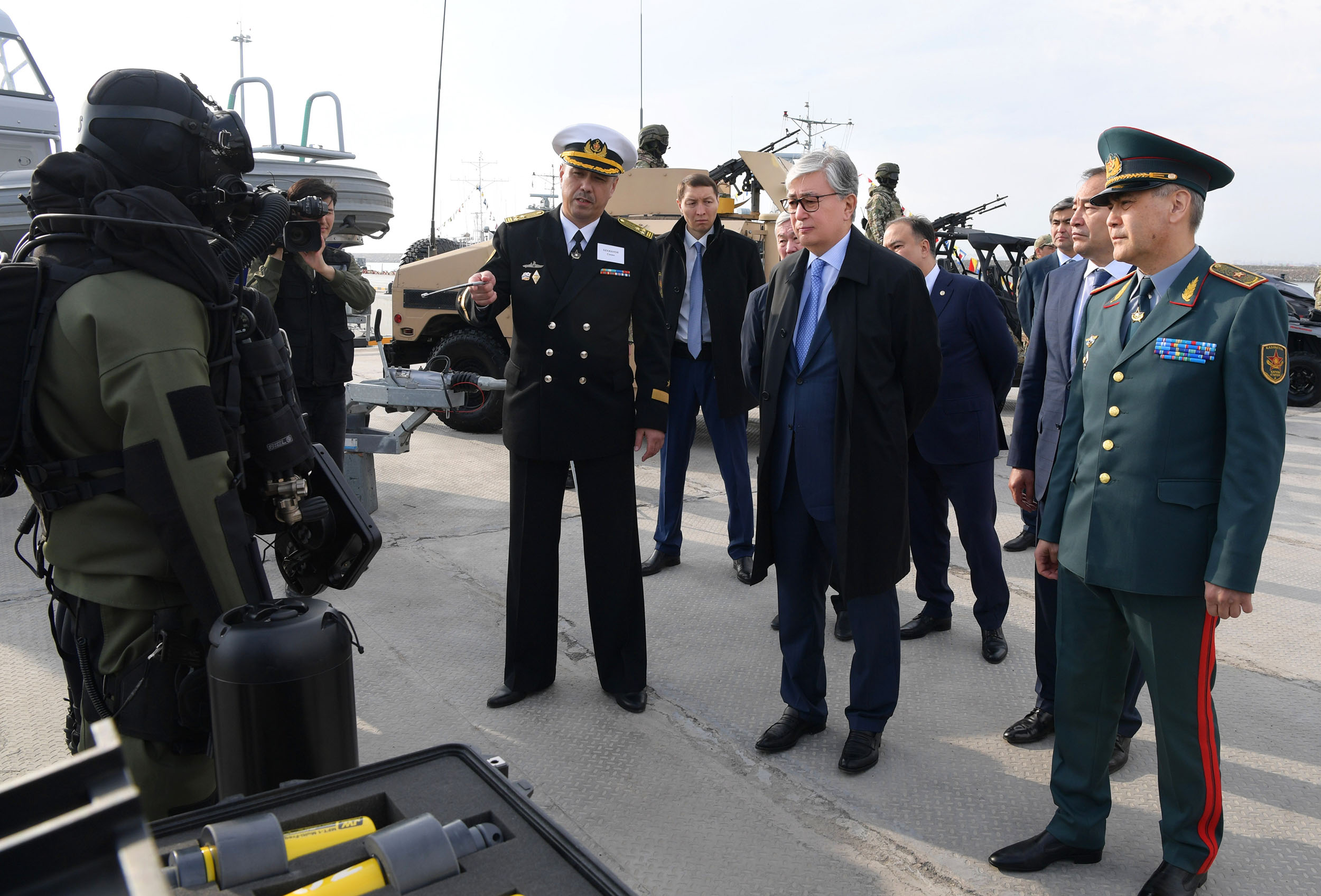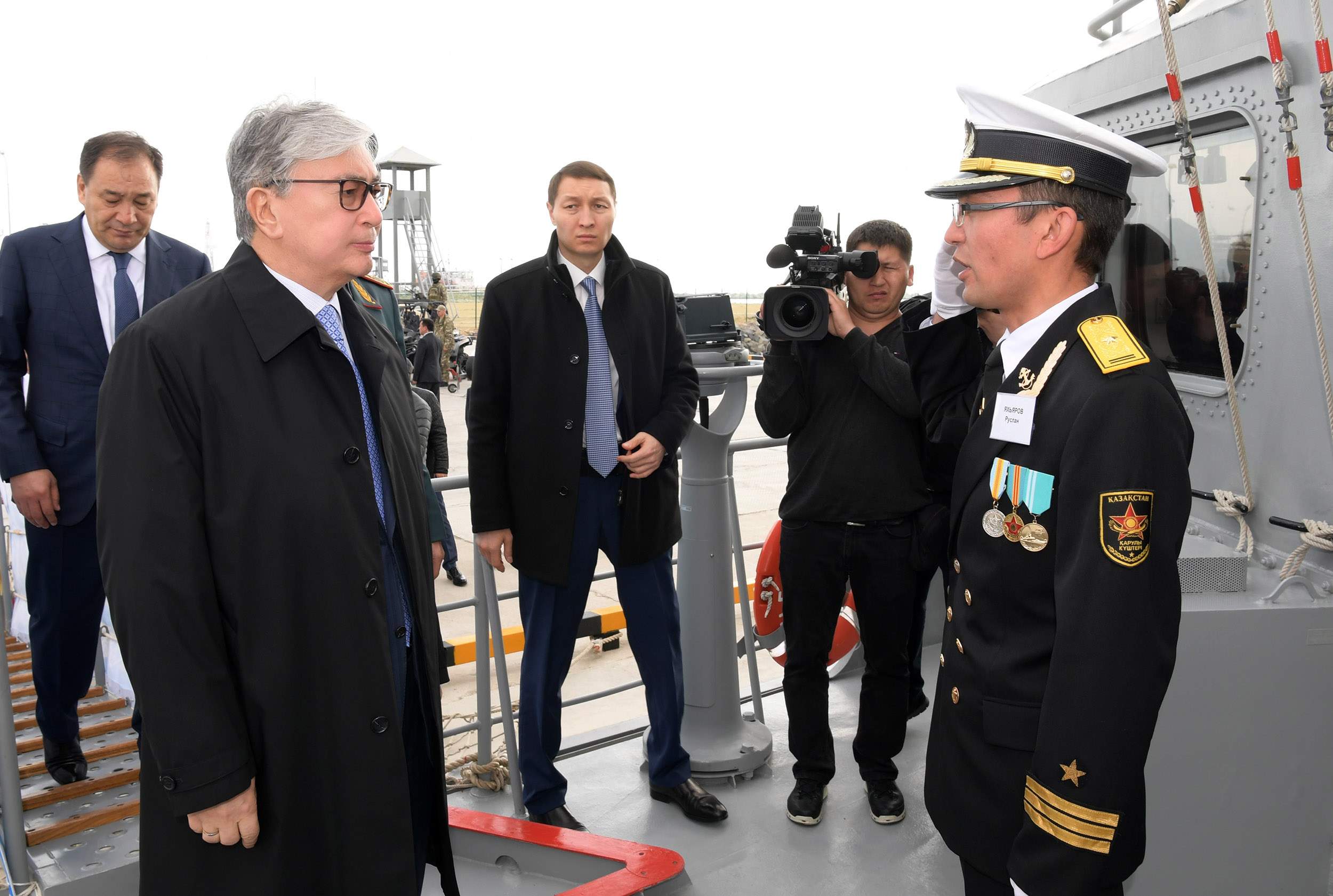 In addition, the President of Kazakhstan examined Mangystau rocket-artillery ship, and also familiarized himself with samples of military equipment, weapons and equipment of the Naval Forces of Kazakhstan’s Defense Ministry.