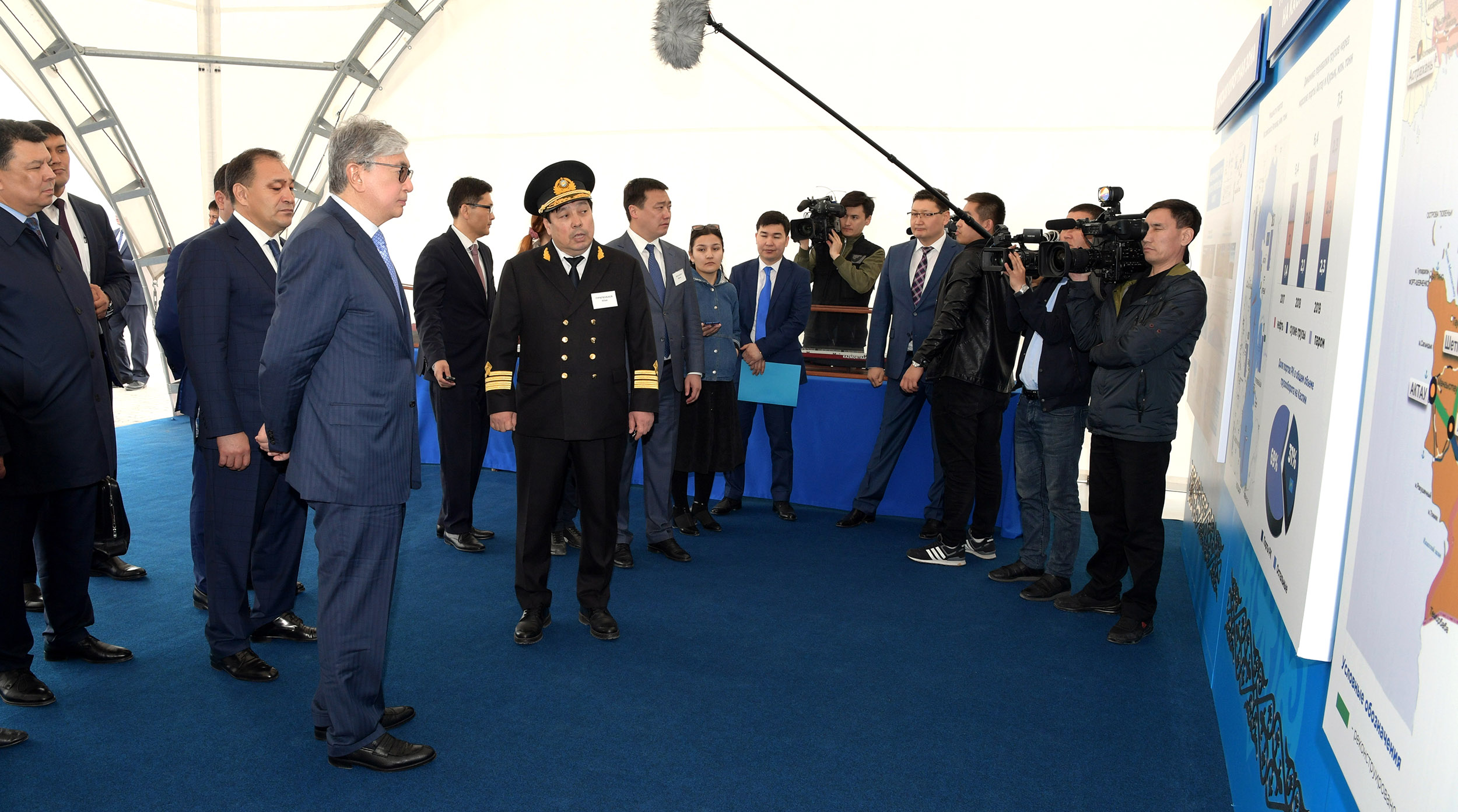 During the visit, the Head of State was briefed on the current activities of Aktau’s sea port, prospects for increasing the volume of cargo transportation in the Caspian Sea, as well as the development of Aktau’s resort area infrastructure.
