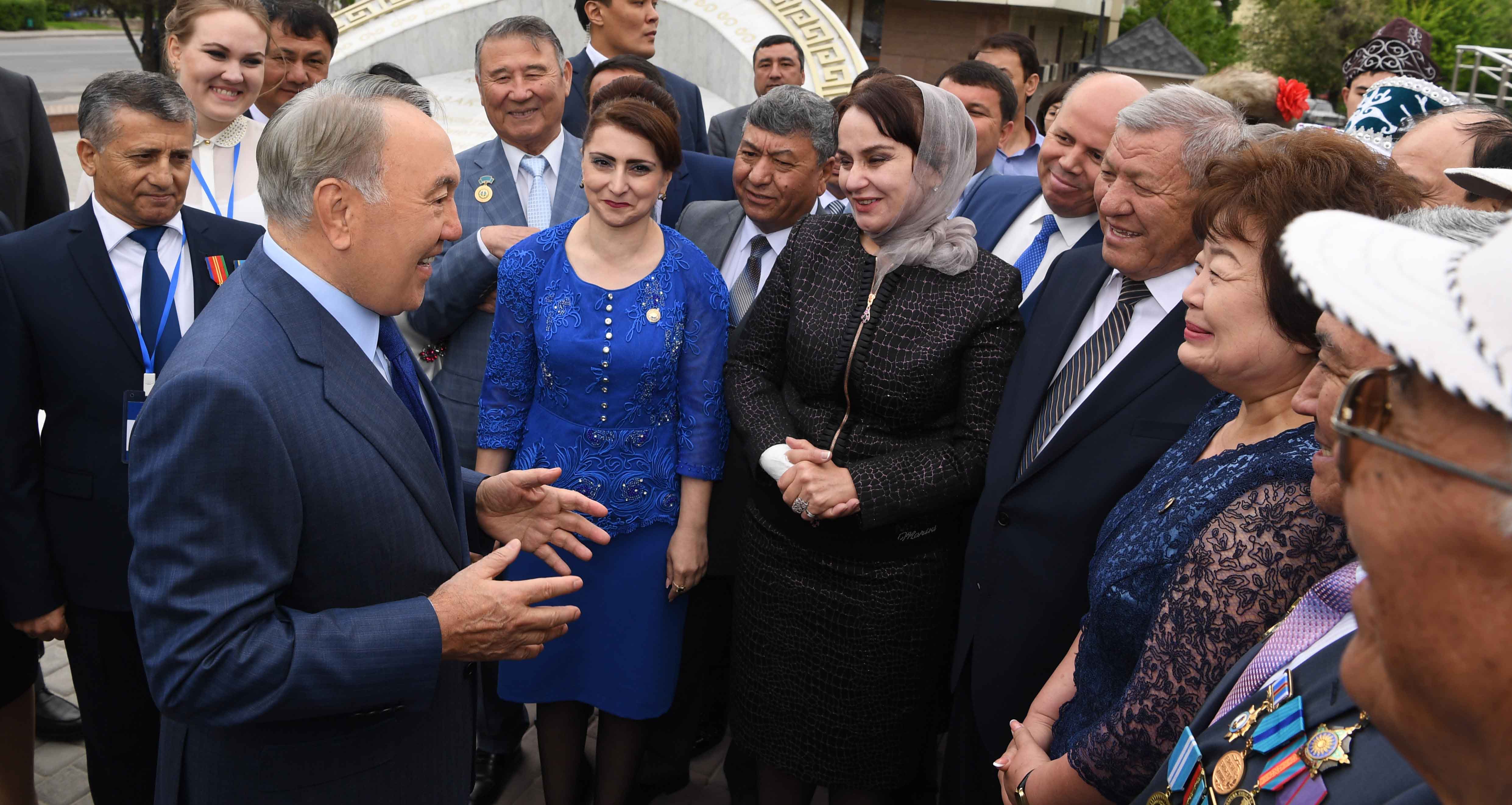 The Head of State inspected "Kazakh Eline Myn Algys" monument, erected in front of the regional building of the Assembly of People of Kazakhstan. The monument was built on the initiative of 20 ethno-cultural associations of the region and is a symbol of gratitude and purity of thoughts of different ethnic groups to the Kazakh people.