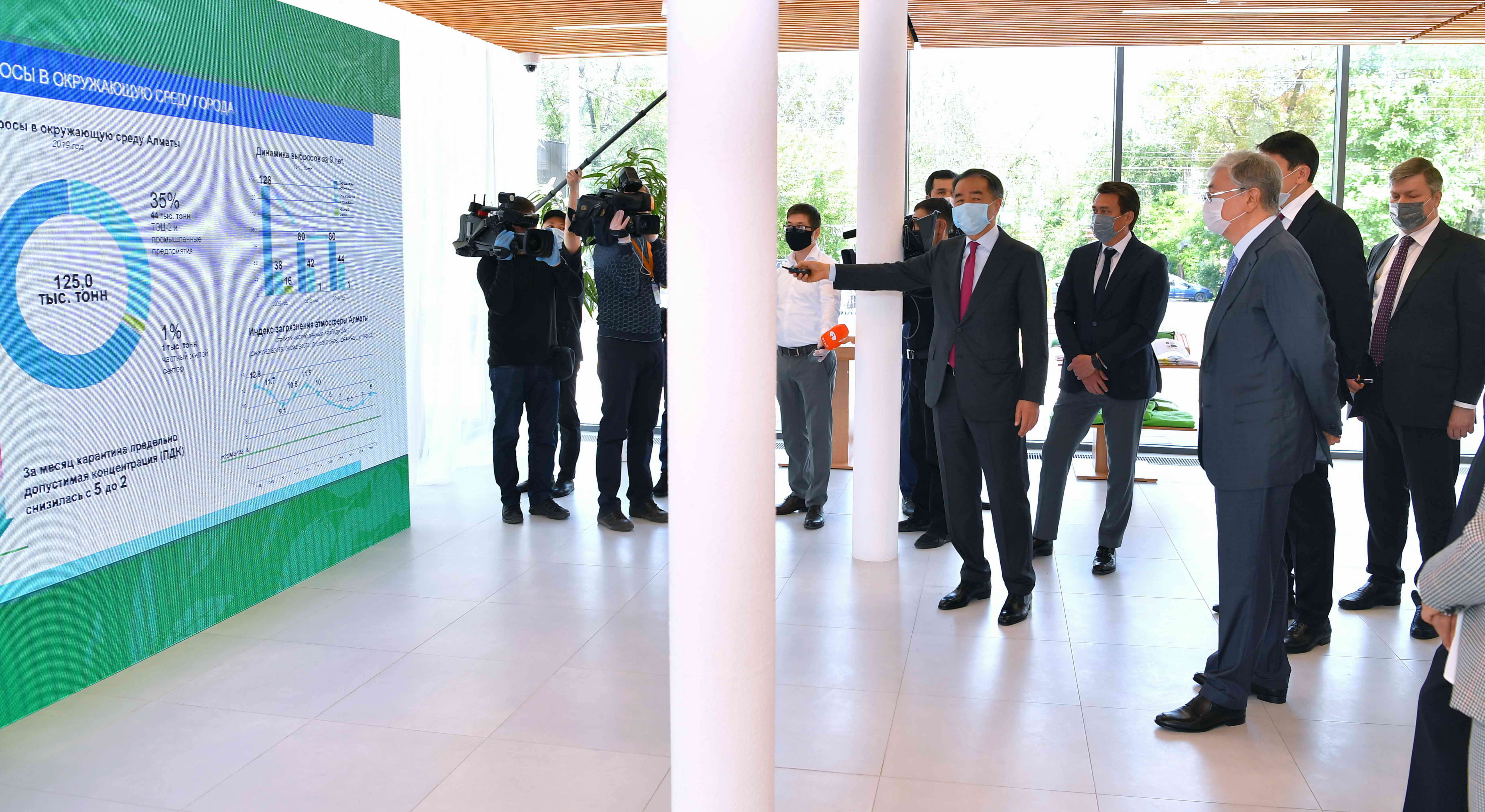 The Head of State heard a detailed report of Almaty’s Mayor Bakytzhan Sagintayev report on the development of the city, while Minister of Ecology, Geology and Natural Resources Magzum Mirzagaliyev reported on the environmental situation in Almaty.
