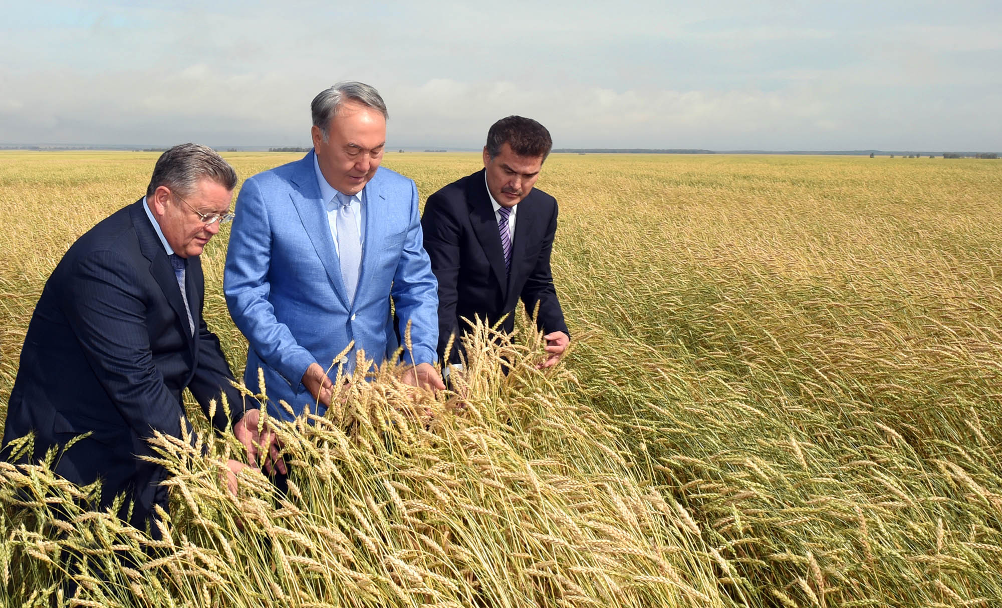 The Head of State examined the grain fields, and agricultural equipment. Nursultan Nazarbayev has been informed on the status of crops, as well as harvesting process.
