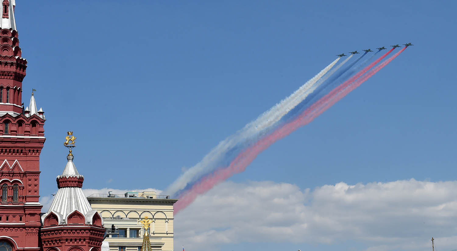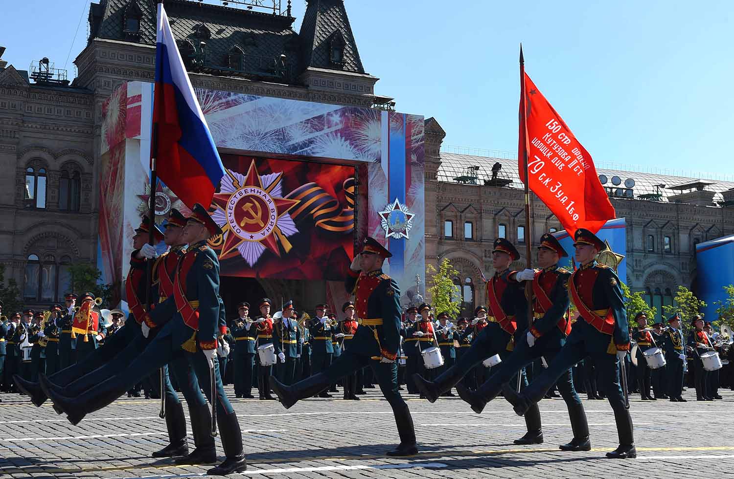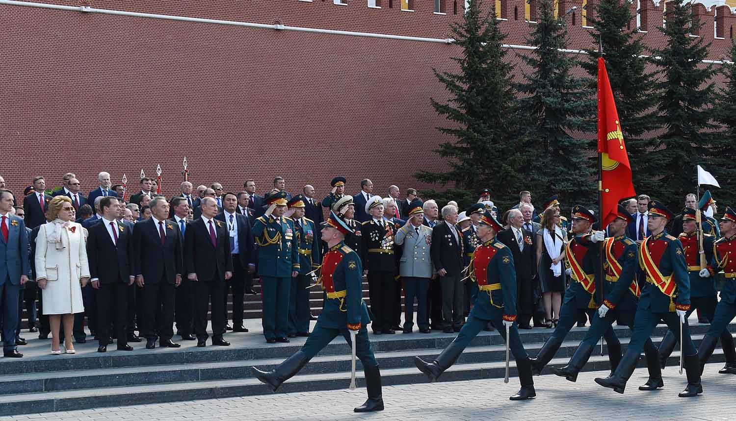 Nursultan Nazarbayev attended the Victory Day military parade in the Red Square and took part in a wreath laying ceremony at The Tomb of the Unknown Soldier. *** More than 10,000 troops participated in the parade with over 100 units of modern weapons and military equipment being displayed.