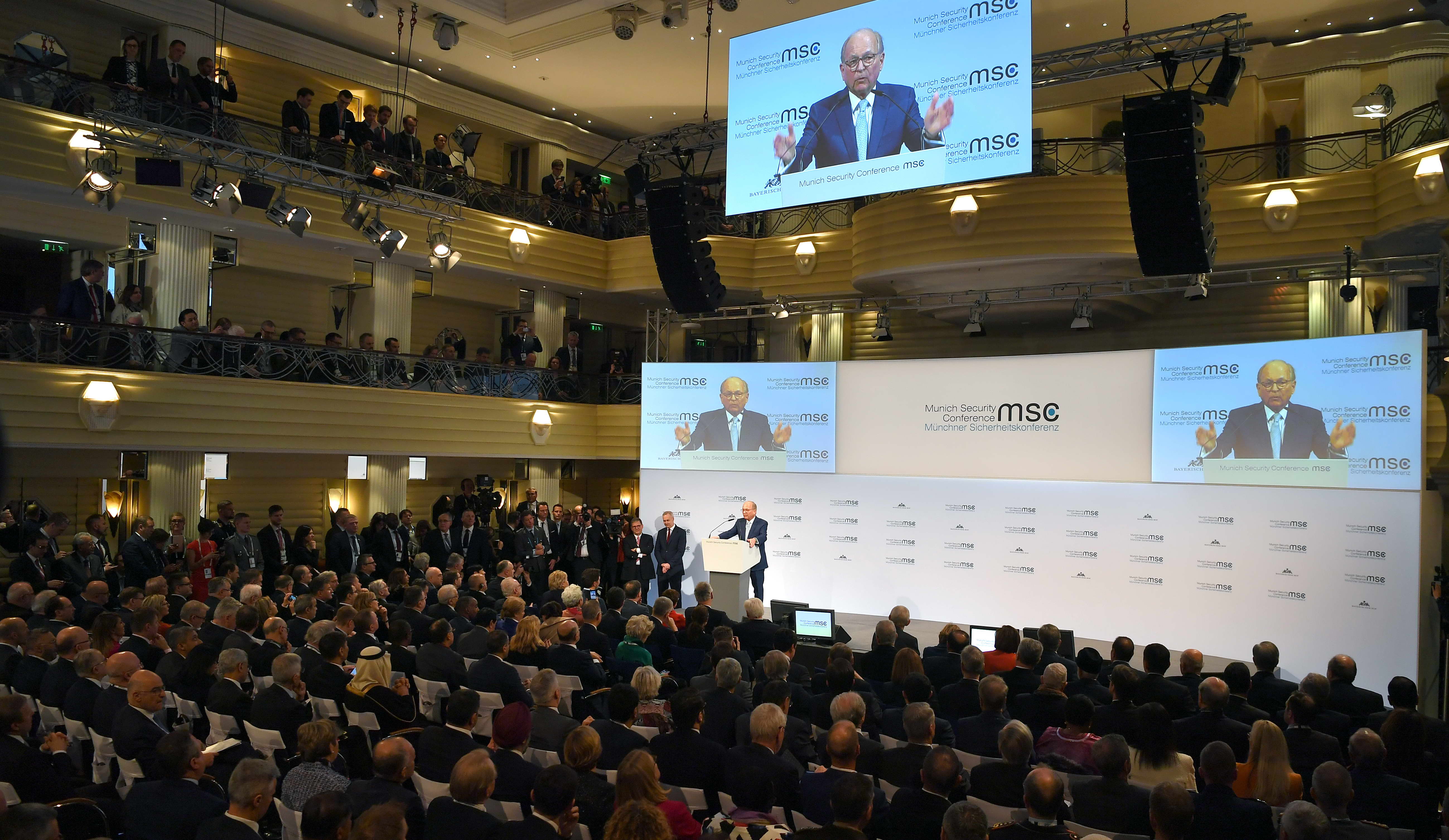 Chairman of the Munich Security Conference Wolfgang Ischinger, President of Germany Frank-Walter Steinmeier, President of France Emmanuel Macron addressed the ceremony’s participants.