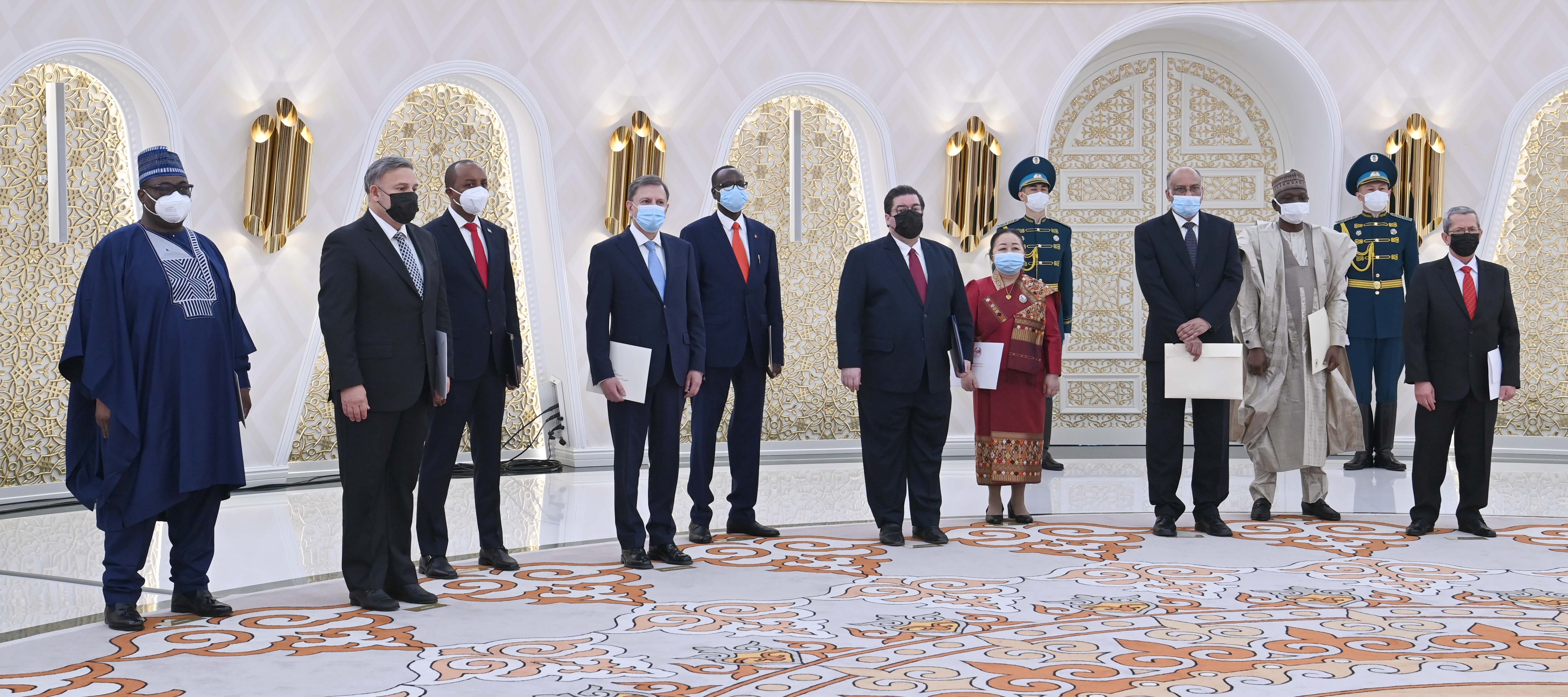 The credentials were presented by the Ambassadors of Cuba - Oscar Santana Leon (with residence in Nur-Sultan), Bangladesh - Kamrul Ahsan, the Dominican Republic - Frank Hans Dannenberg Castellanos, Argentina - Eduardo Antonio Zuain, Peru - Juan Genaro Del Campo Rodríguez, Nigeria - Yakubu Santuraki Suleiman, Laos - Vilavan Yiaporher, Chad - Mahamoud Adam Béchir, Rwanda - Ntampaka Fidelis Mironko, Benin - Akambi Andre Okunlola Biau.