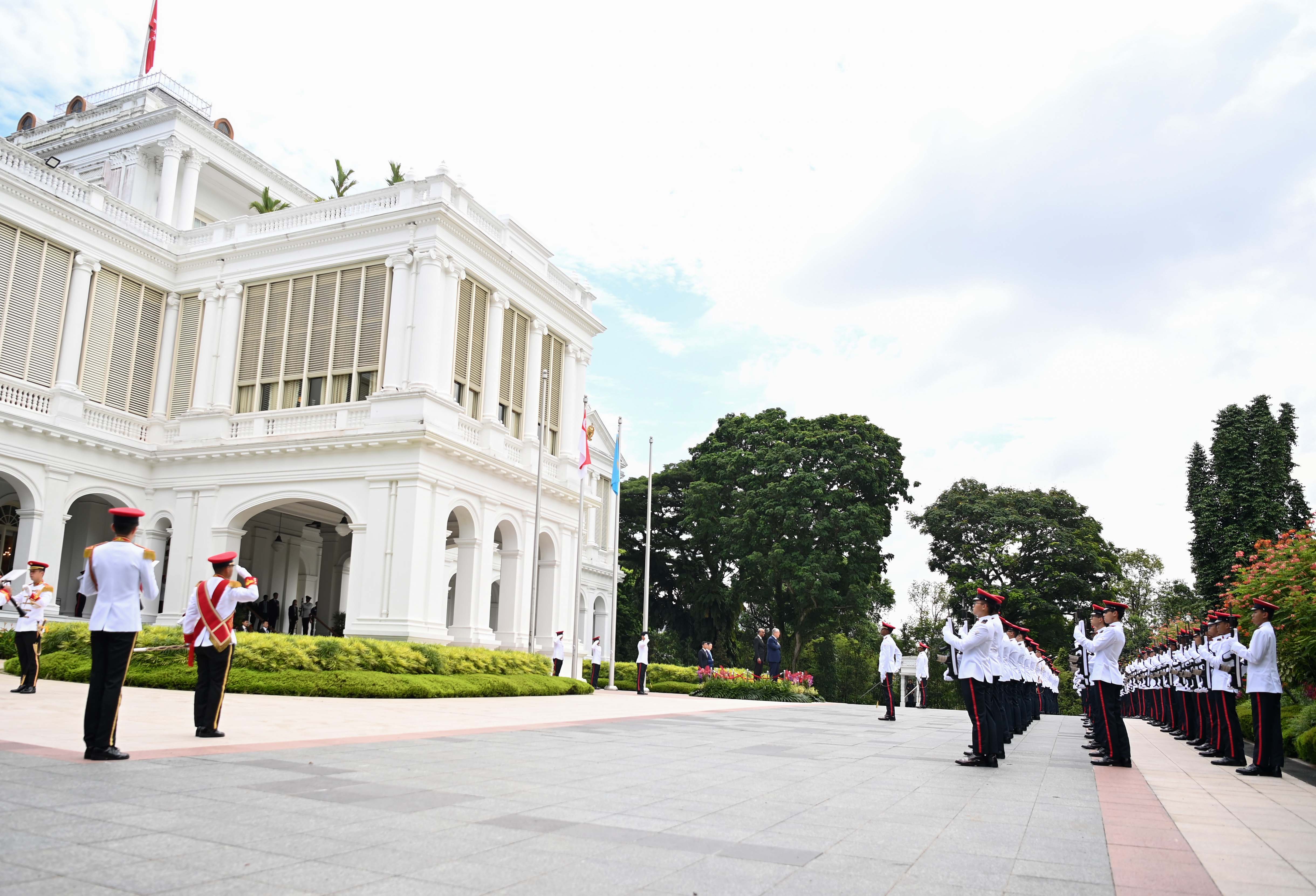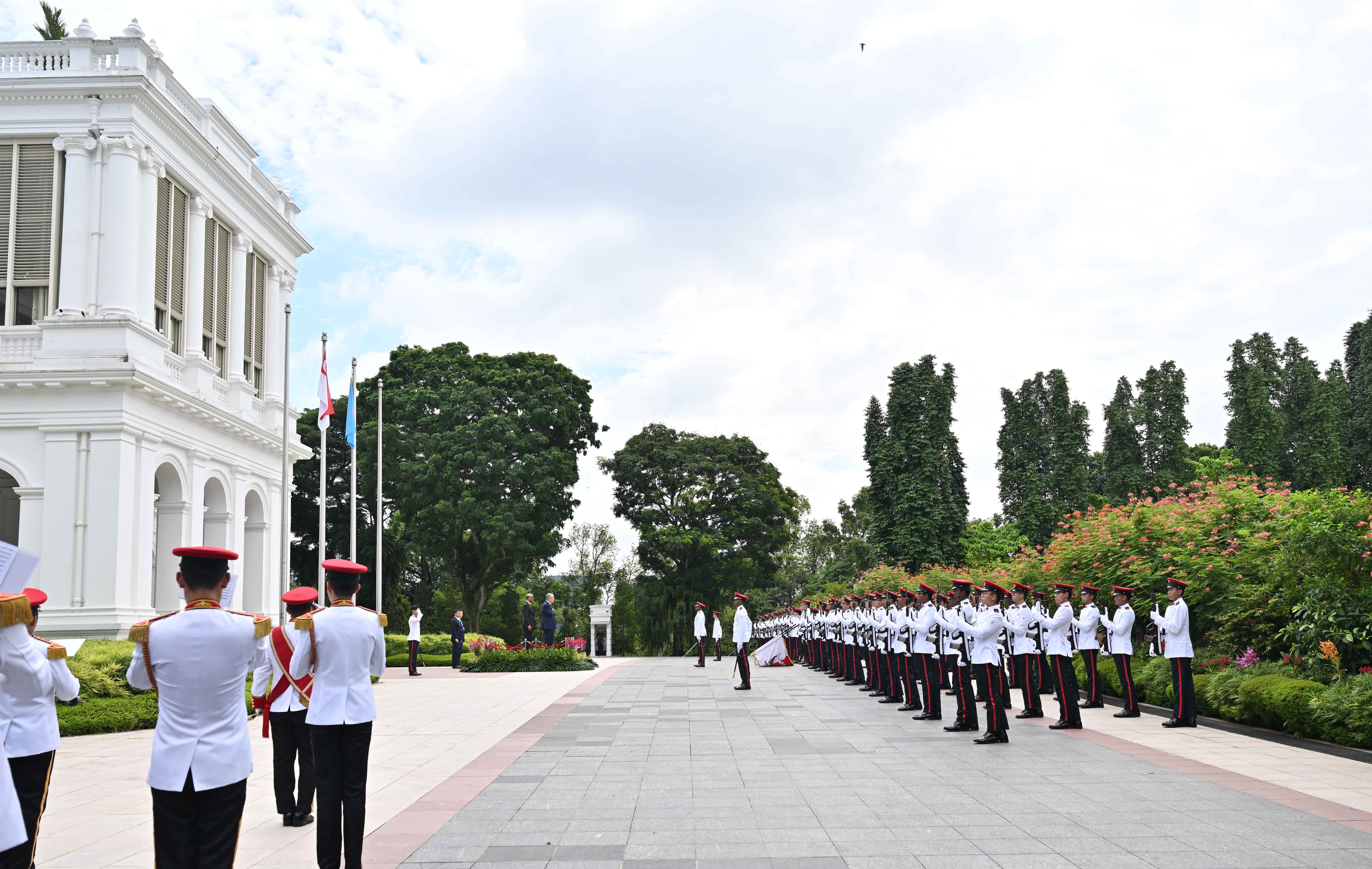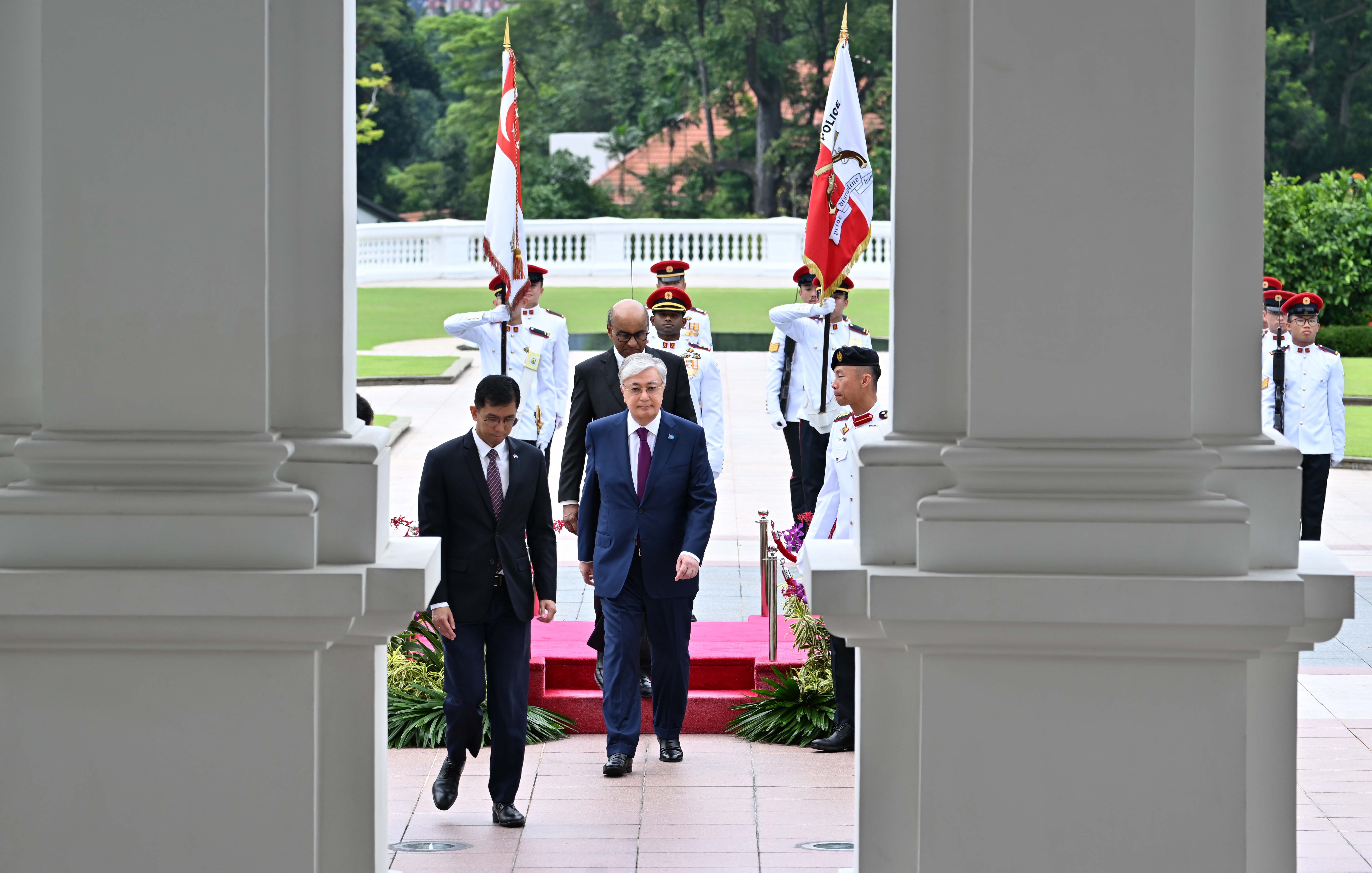 Upon his arrival in Singapore on a state visit, Kassym-Jomart Tokayev was greeted by President Tharman Shanmugaratnam at the Istana Palace.