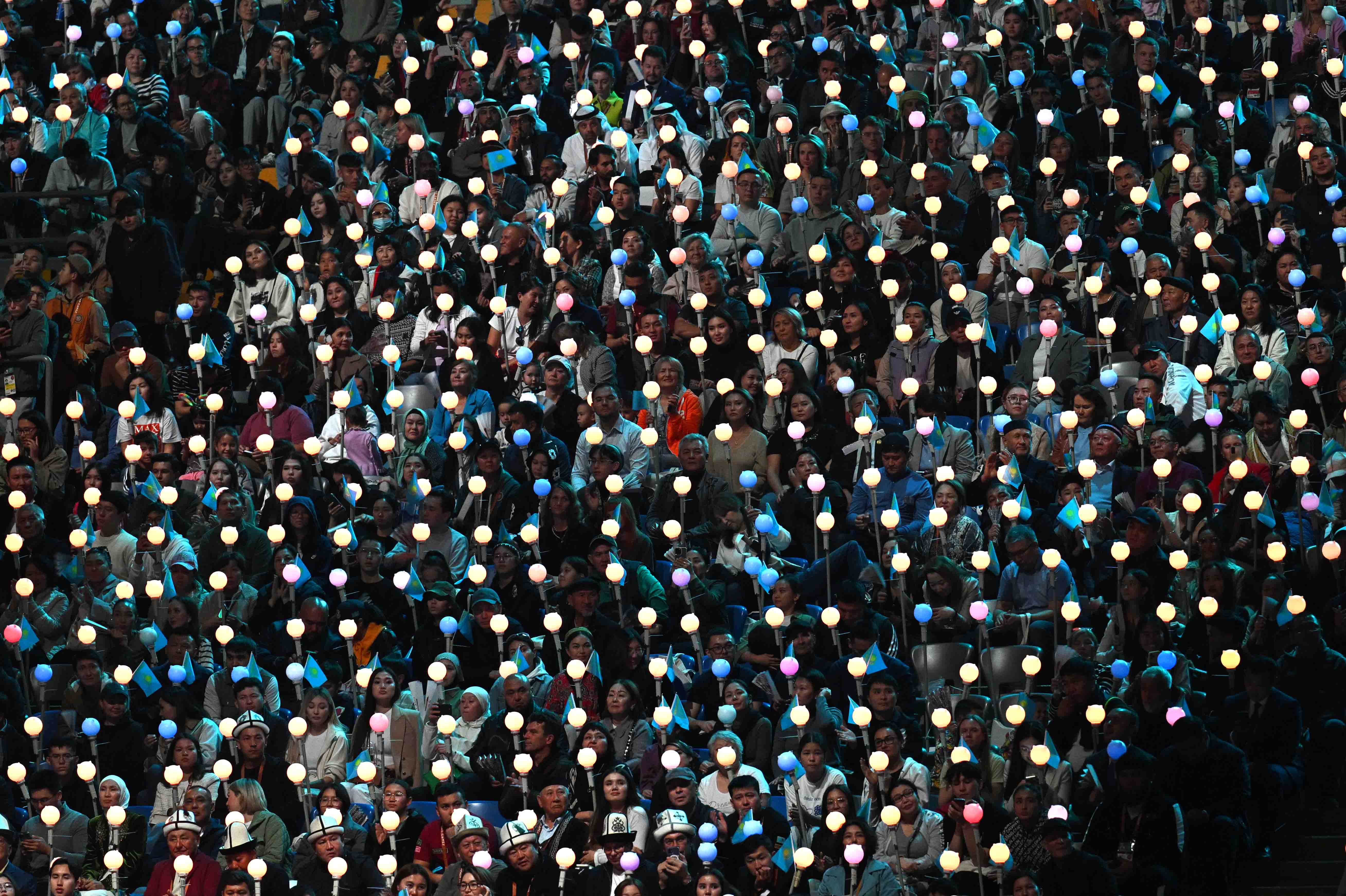 At the commencement of the ceremony, children representing various ethnic groups in Kazakhstan presented the national flag, after which the national anthem was played.