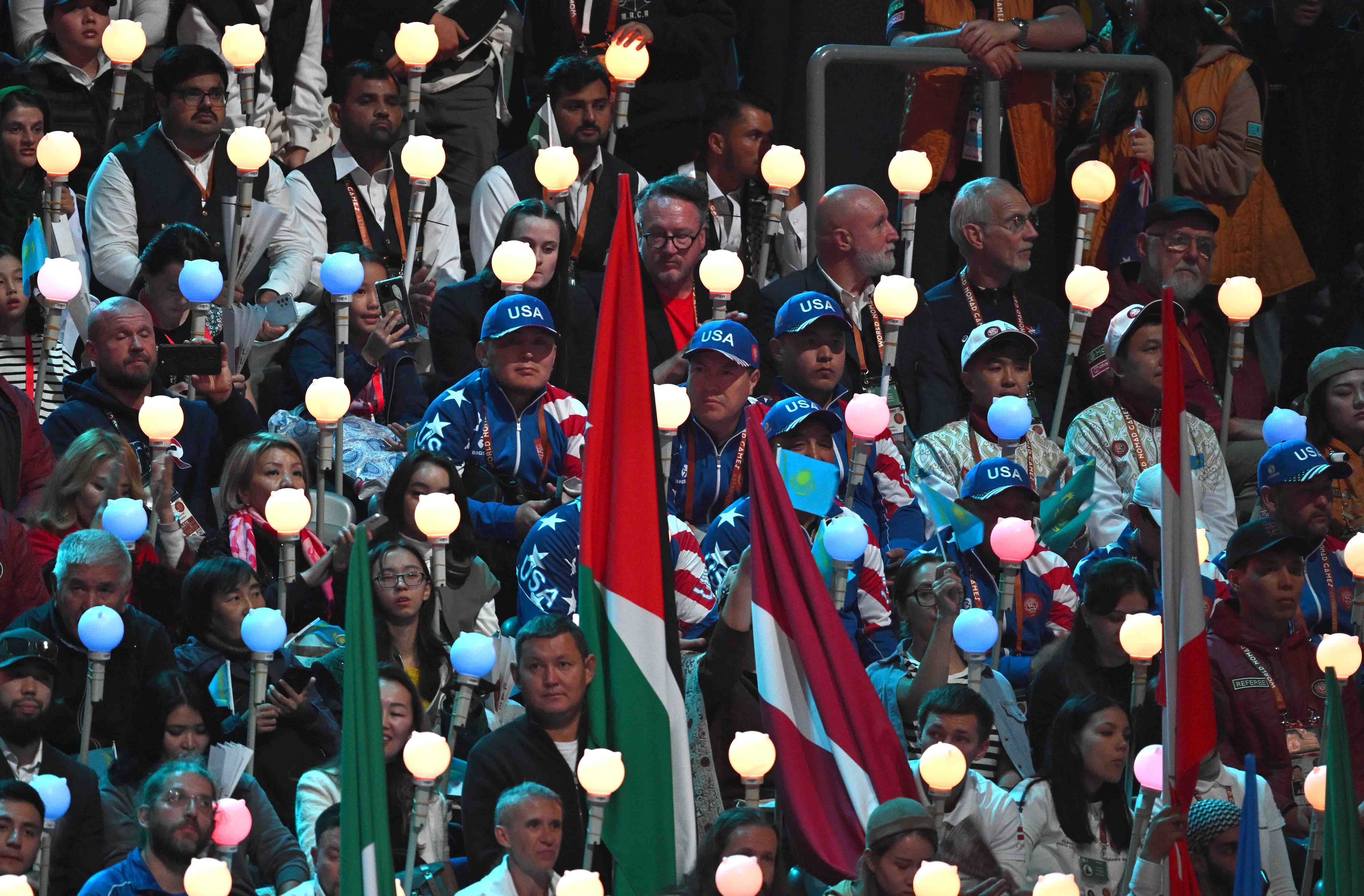 The event at the Astana Arena stadium was attended by President of Uzbekistan Shavkat Mirziyoyev, President of Kyrgyzstan Sadyr Zhaparov, Chairman of the Halk Maslahaty of Turkmenistan Gurbanguly Berdimuhamedov, Rais (Head) of the Republic of Tatarstan Rustam Minnikhanov, Head of the Republic of Sakha (Yakutia) Aisen Nikolayev, former President of Mongolia Nambaryn Enkhbayar, President of the World Ethnosport Confederation Bilal Erdoğan, heads of international structures such as UNESCO, CICA, UN World Tourism Organization, Organization of Turkic States, TURKSOY, Turkic Investment Fund, Parliamentary Assembly of Turkic States, Islamic Solidarity Sports Federation, Islamic Organization for Food Security, as well as the European Union Special Representative for Central Asia and other officials.