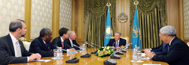 - Мен сіздерге Қазақстанға қош келдіңіздер демекпін. Тәуелсіздіктің 20 жылы ішінде біз барлық өзара қарым-қатынастарымыз бойынша АҚШ-пен белсенді ықтымақтастық орнаттық. Тәуелсіздігімізді жариялаған соң, келесі жылы мен сіздердің елде болып, АҚШ Президенті үлкен Джордж Бушпен кездестім. Біз Қазақстанның тәуелсіздігінің қалыптасуына қолдау көрсетудің түрлі мәселелерін, соның ішінде ядролық қарусыздану мәселесін бірге талқыладық. Өздеріңіз білетіндей, ол кезде біз ядролық қарудың орасан арсеналы мен полигонға ие едік. Содан бері көп жыл өтті. Әлемде көптеген өзгерістер болды. Біз танымал әрі құрмет тұтар елге айналдық. Бүгінде еліміз айтарлықтай дамып келеді. Біз 2020-2025 жылдары әлемнің дамыған елдері қатарына кіру туралы алдымызға міндет қойып отырмыз, - деп атап өтті Нұрсұлтан Назарбаев.