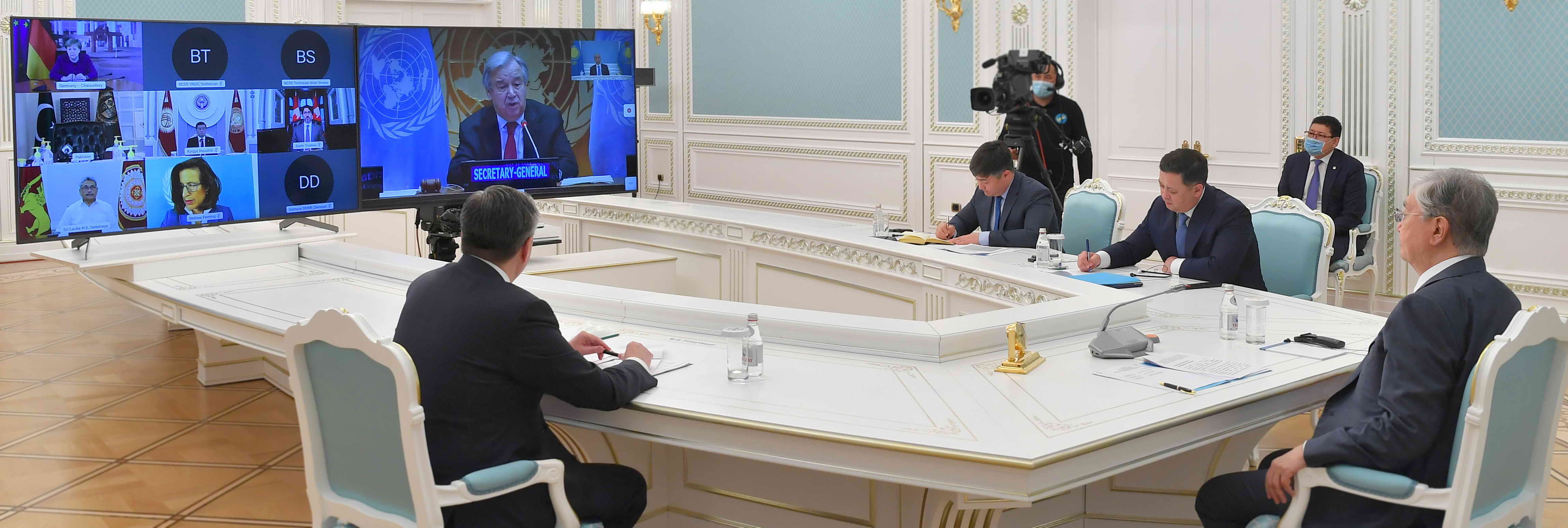 Қасым-Жомарт Тоқаев Қазақстанның «БҰҰ-ның гуманитарлық көмек көрсетудің жаһандық жоспарын» іске асыруға және коронавирусқа қарсы күрес барысында бірқатар шет мемлекетке жасаған гуманитарлық қолдауын ерекше атап өтті. Мемлекет басшысы еліміздің жаһандық азық-түлік қауіпсіздігін қамтамасыз етуге, қақтығыстарды реттеуге және бейбітшілік орнатуға бейілді екенін нақтылады.