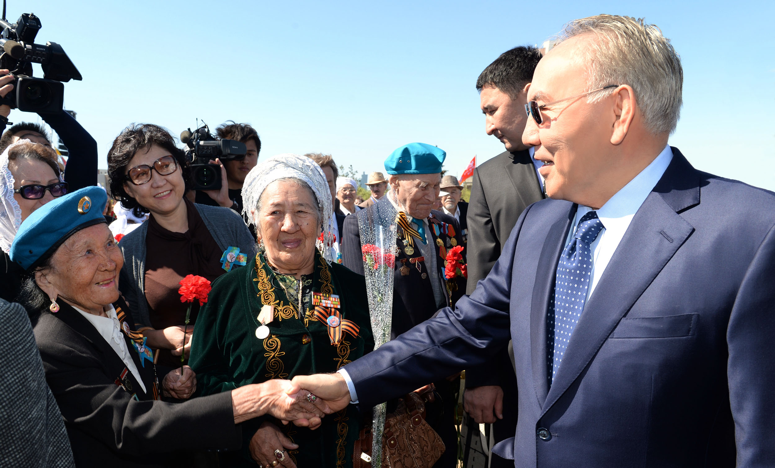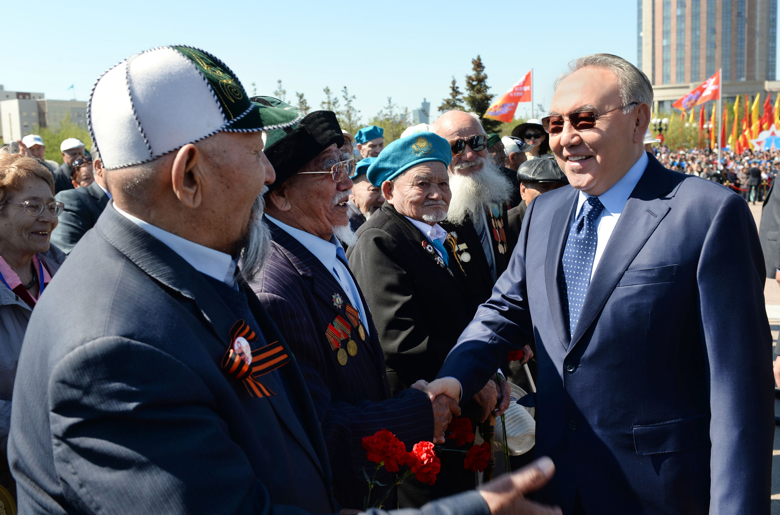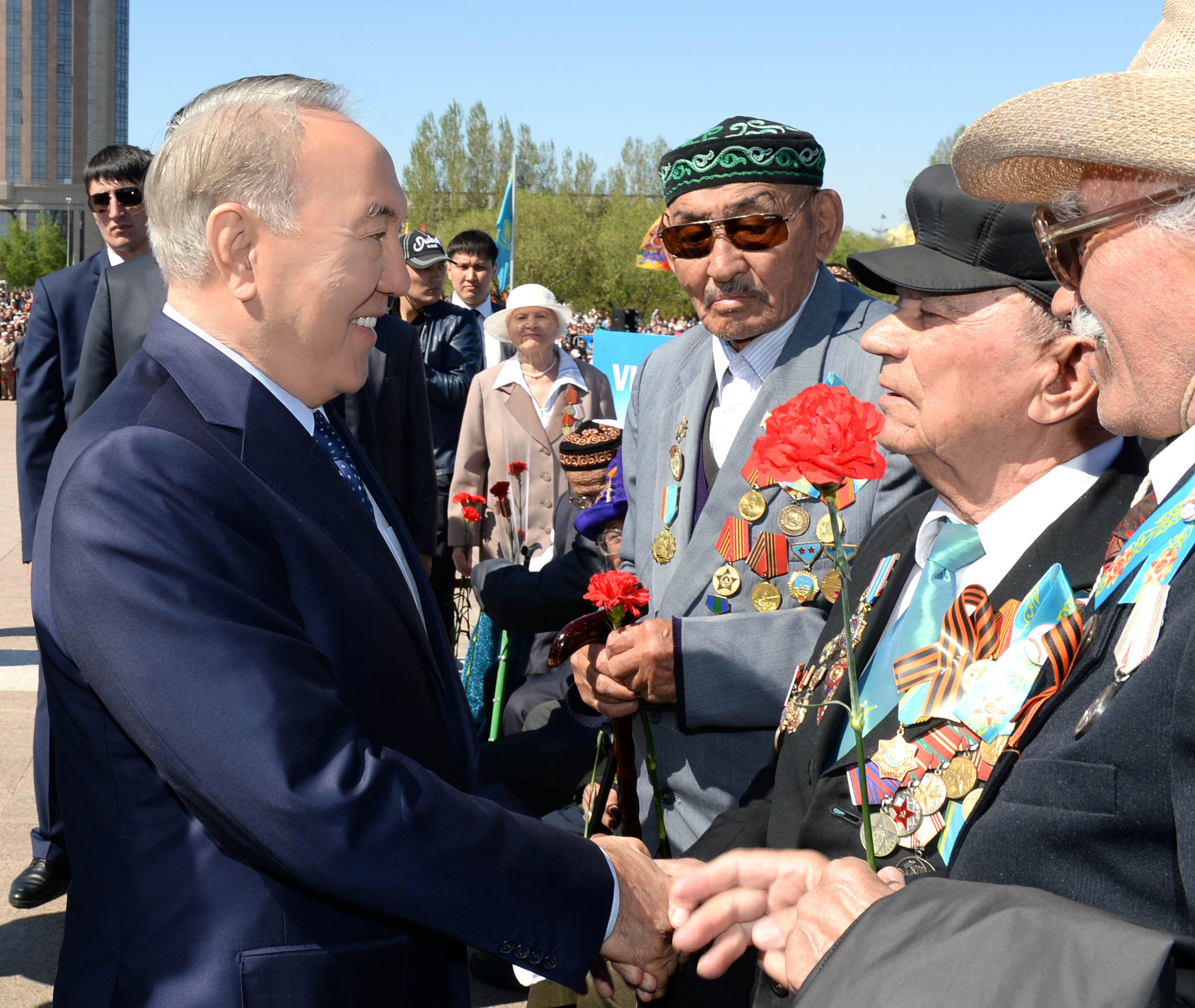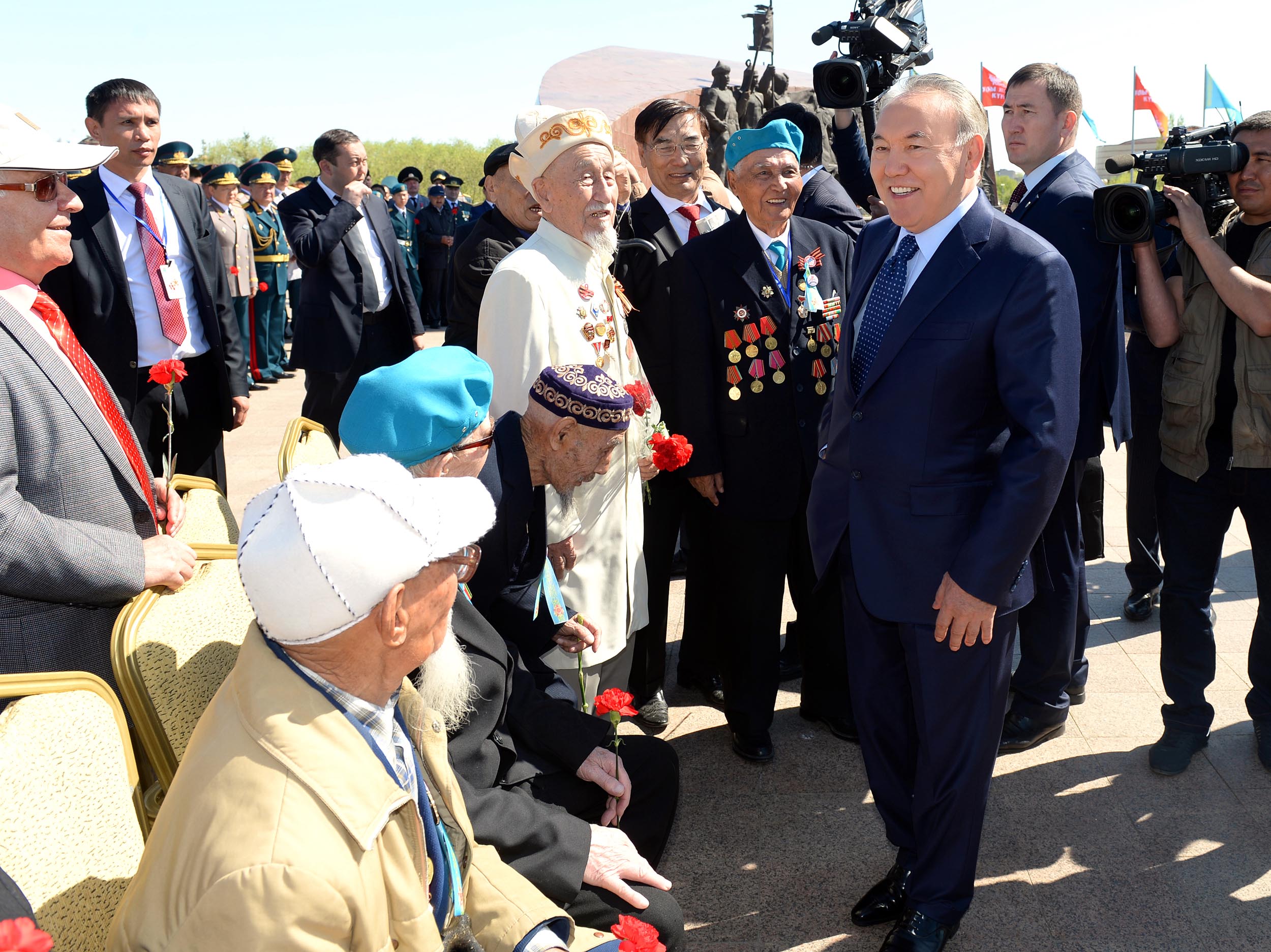 – Бағалап, құрметтей отырып, олардан ерлік, еңбексүйгіштік және бірлікке бекемдікті үйренген жөн. Келесі жылы Жеңістің 70 жылдығын бірлесе атап өту үшін олар қасымызда аман-сау жүрсін, – деді Қазақстан Президенті