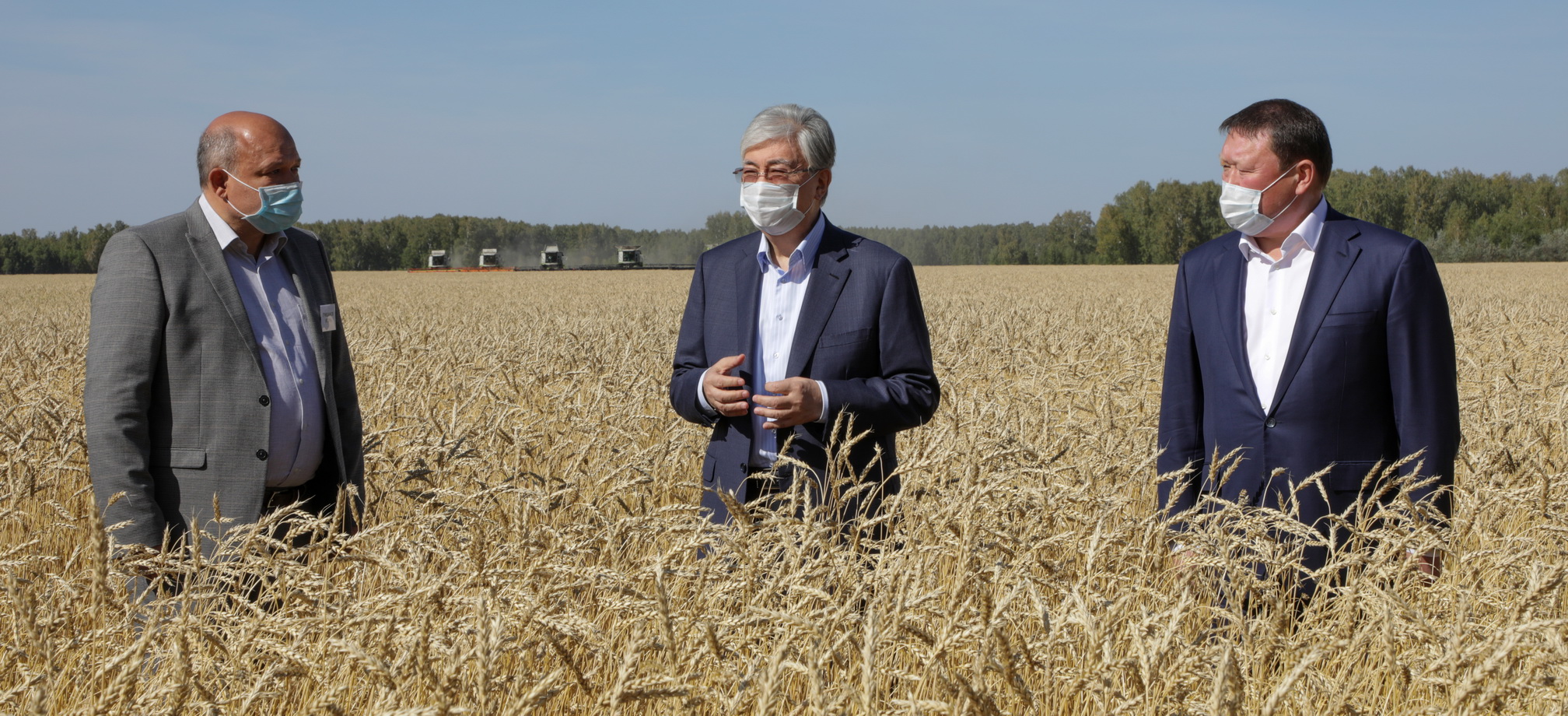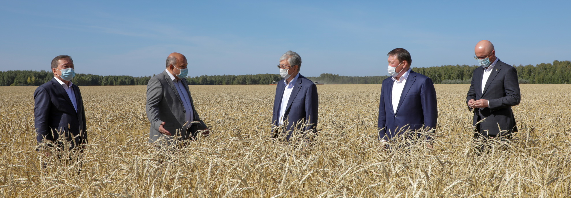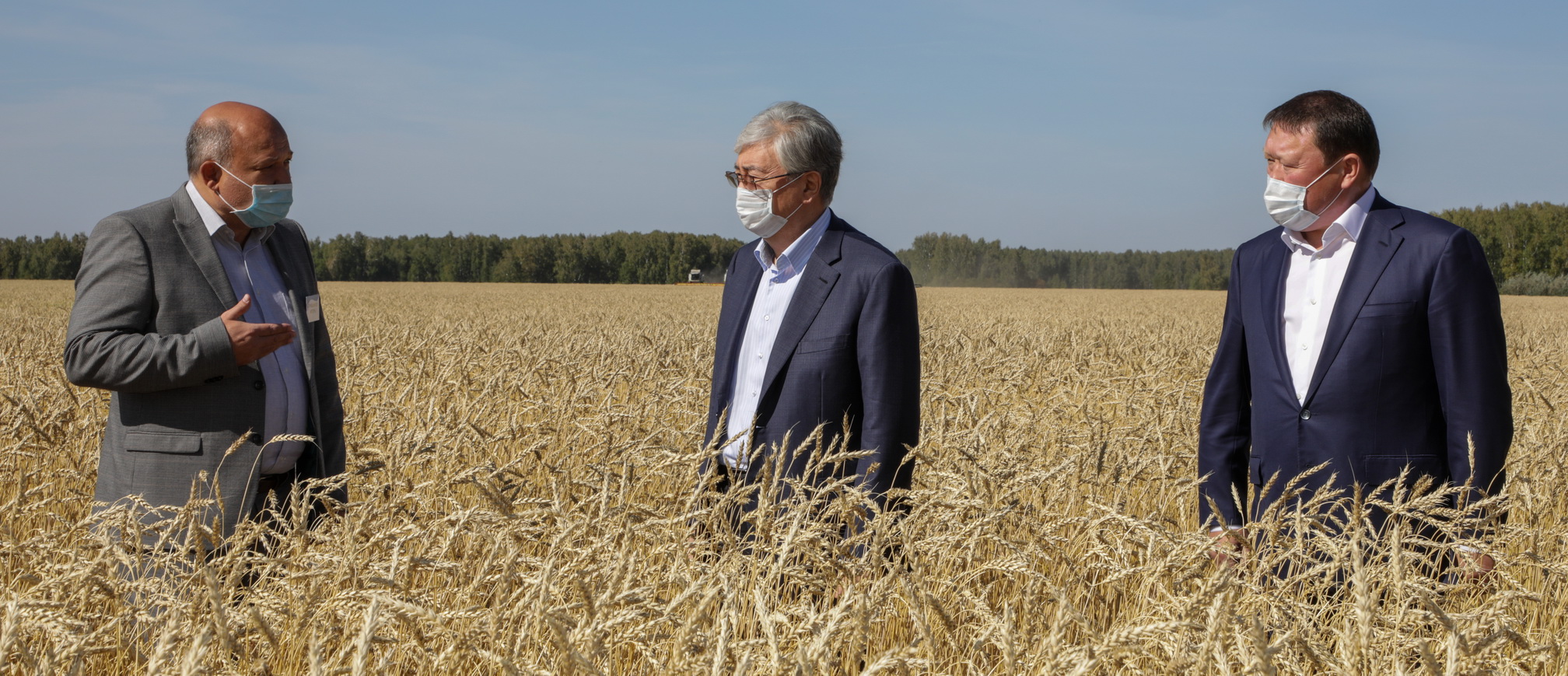 Мемлекет басшысы егістік алқабын аралап, «Аби жер» ЖШС-нің астық жинау науқанының барысымен танысты.