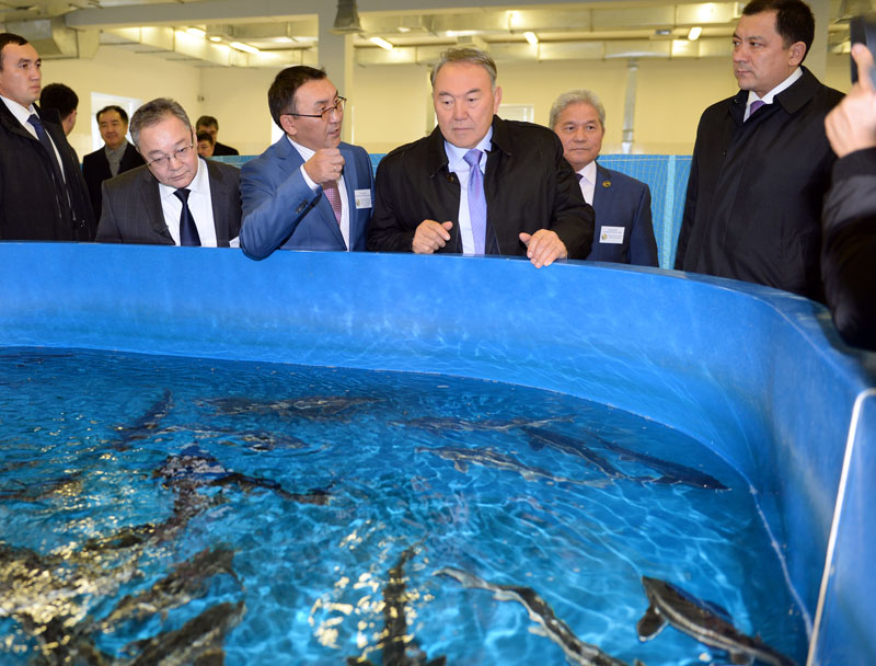 Мемлекет басшысы қара уылдырық және тауарлы бекіре өндіру бағытындағы бекіре тұқымдас балықтарды тұйық суда өсіретін ғылыми-технологиялық өнеркәсіптік аквакешенмен танысты. Ғылыми зертхана қызметі технологияларды жетілдіру және жаңа технологиялық шешімдер негізінде индустриялық аквамәдениетті әзірлеу мен игеру аясында жүзеге асырылуда. Зертхананың жобалық қуаты – жылына 8 тонна қара уылдырық және 86 тонна бекіре өндіру.