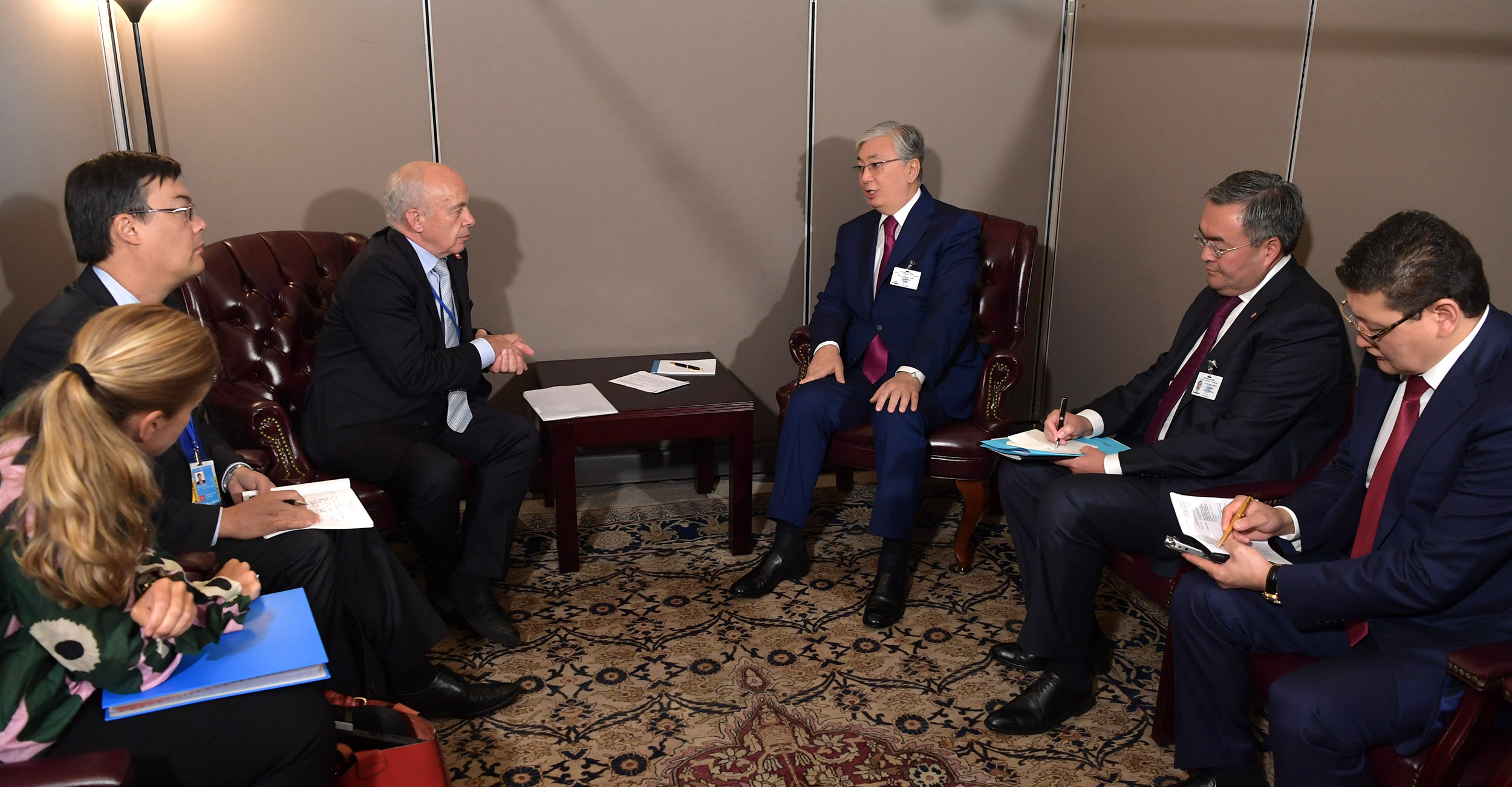БҰҰ Бас Ассамблеясы 74-ші сессиясының алаңында Мемлекет басшысы Қасым-Жомарт Тоқаев Швейцария Президенті Ули Маурермен екіжақты кездесу өткізді.