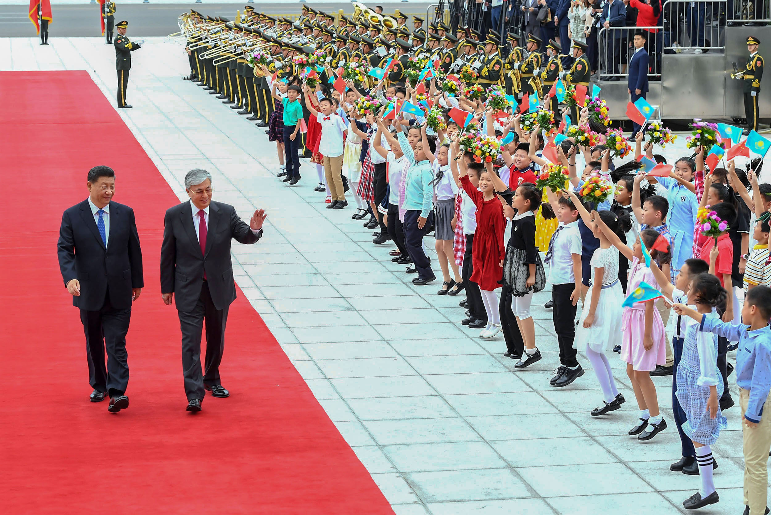 Қасым-Жомарт Тоқаев пен Си Цзиньпиннің ресми кездесуінің салтанатты шарасы барысында Қазақстан Республикасы мен Қытай Халық Республикасының мемлекеттік Әнұрандары орындалды. Құрмет қарауылының бастығы рапорт берді. Мемлекеттер басшылары Құрмет қарауылы ротасының сапын аралап шықты. Содан кейін Құрмет қарауылының ротасы Қазақстан Президенті мен Қытай Төрағасының алдынан сап түзеп өтті. Зеңбіректерден дүркін-дүркін оқ атылып, Мемлекеттер басшыларына құрмет көрсетілді.