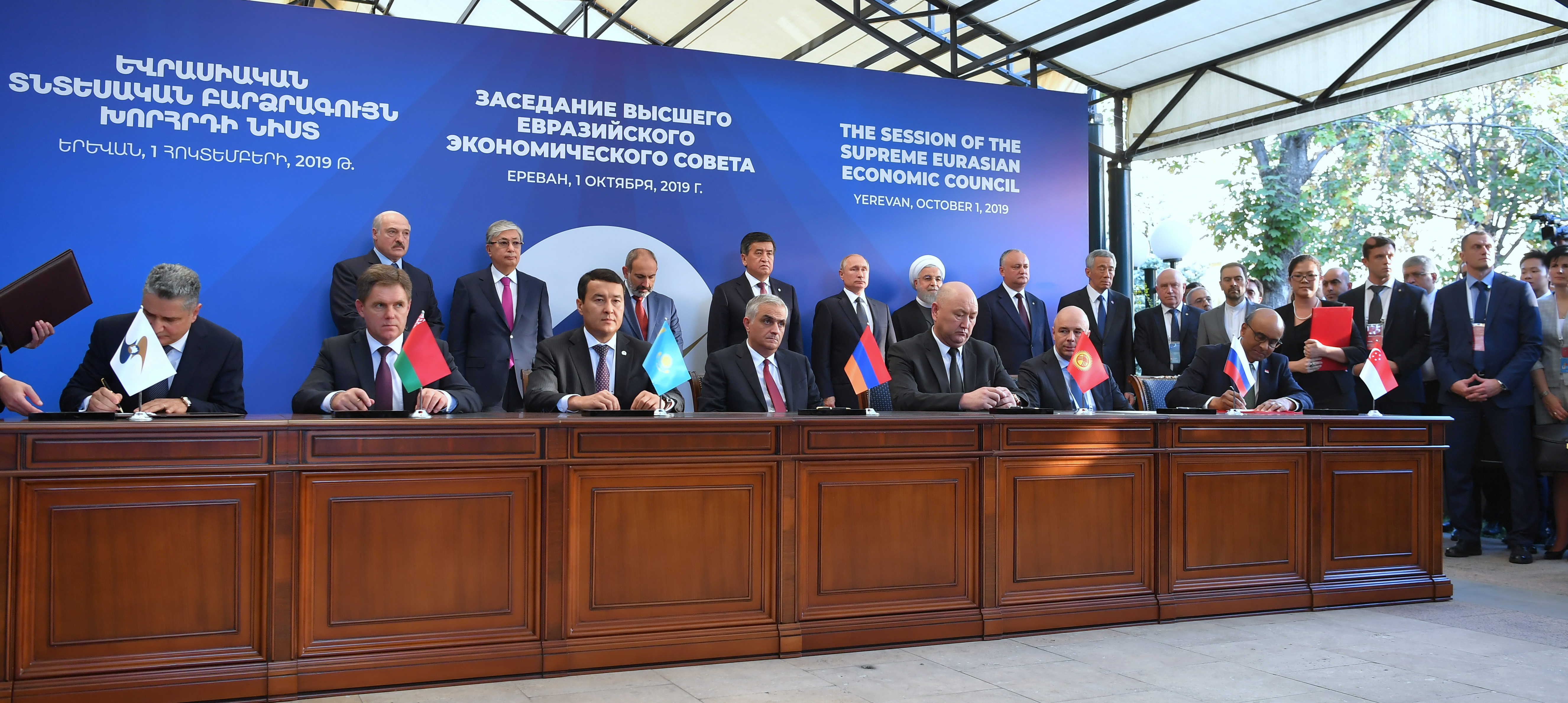 Жоғары Еуразиялық экономикалық кеңес отырысының күн тәртібіндегі басты мәселе Еуразиялық экономикалық одаққа мүше-мемлекеттер мен Сингапур Республикасының арасындағы еркін сауда аймағы туралы келісімге қол қою болды. Аталған келісім ЕАЭО елдері үшін 600 миллион халқы бар Оңтүстік-Шығыс Азия елдерінің қауымдастығына мүше-мемлекеттердің алып нарығына жол ашады. Осыған байланысты, Қазақстан Президенті кеңейіп жатқан жаңа нарықтар мен сауда-экономикалық байланыстырды дамытып, аталған бағыттағы келіссөздердің жоғары деңгейін сақтап қалу маңызды екенін айтты.