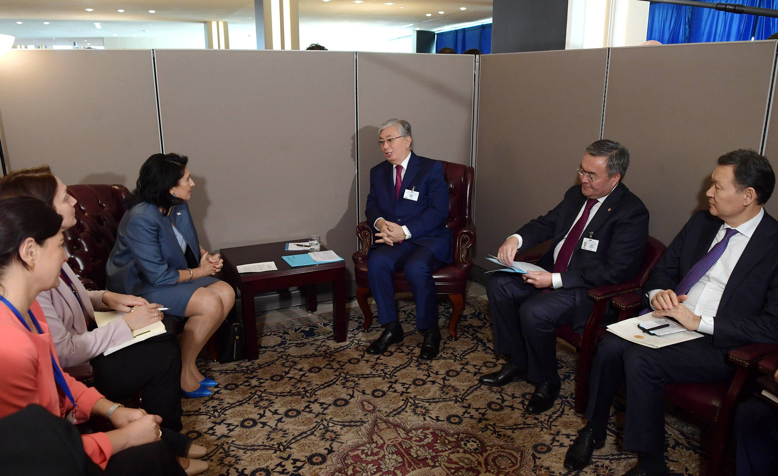 Қасым-Жомарт Тоқаев БҰҰ Бас Ассамблеясының 74-сессиясы аясында Грузия Президенті Саломе Зурабишвилимен де екіжақты келіссөздер жүргізді. Мемлекеттер көшбасшылары екіжақты күн тәртібіндегі өзекті мәселелерді талқылап, сауда-экономикалық, инвестициялық, көлік-логистикалық салаларда өзара іс-қимылдарды кеңейту қажеттігін атап өтті. – Қазақстан Сіздің еліңізбен достық қарым-қатынасты дамытуға, саяси диалогты тереңдетуге және экономикалық ынтымақтастықты кеңейтуге зор мән береді, – деді Қасым-Жомарт Тоқаев. Мемлекет басшысы көлік-логистика саласындағы бірлескен жұмыстардың, соның ішінде, қазақстандық Ақтау және Құрық порттарын пайдалану арқылы екі ел арасындаға жүк тасымалын жүзеге асырудың маңыздылығын айтты. Өз кезегінде, Саломе Зурабишвили Грузияның инвестициялық және көлік-логистикалық жобаларына Қазақстан капиталының белсенді қатысып отырғаны үшін Қасым-Жомарт Тоқаевқа алғыс білдірді.