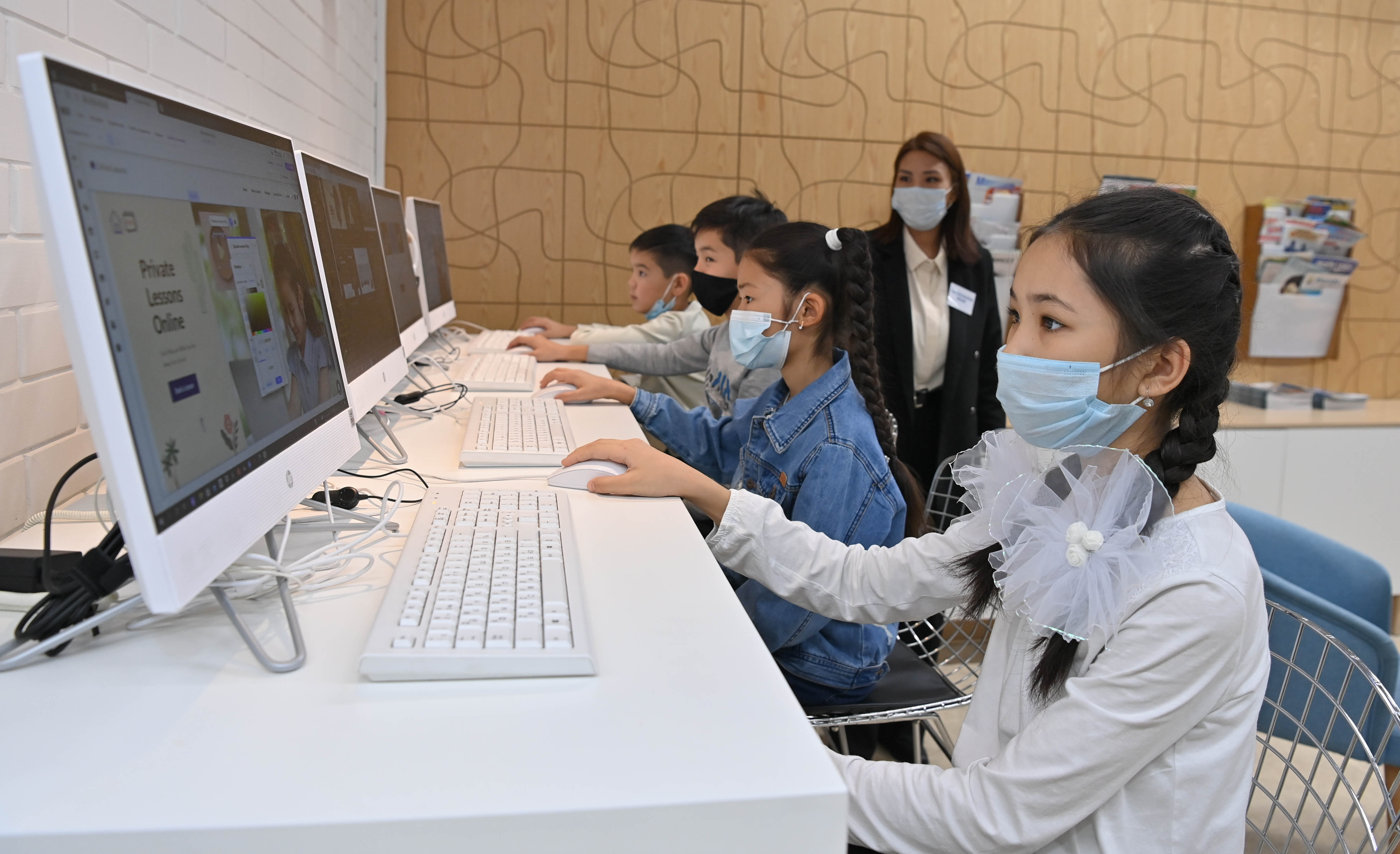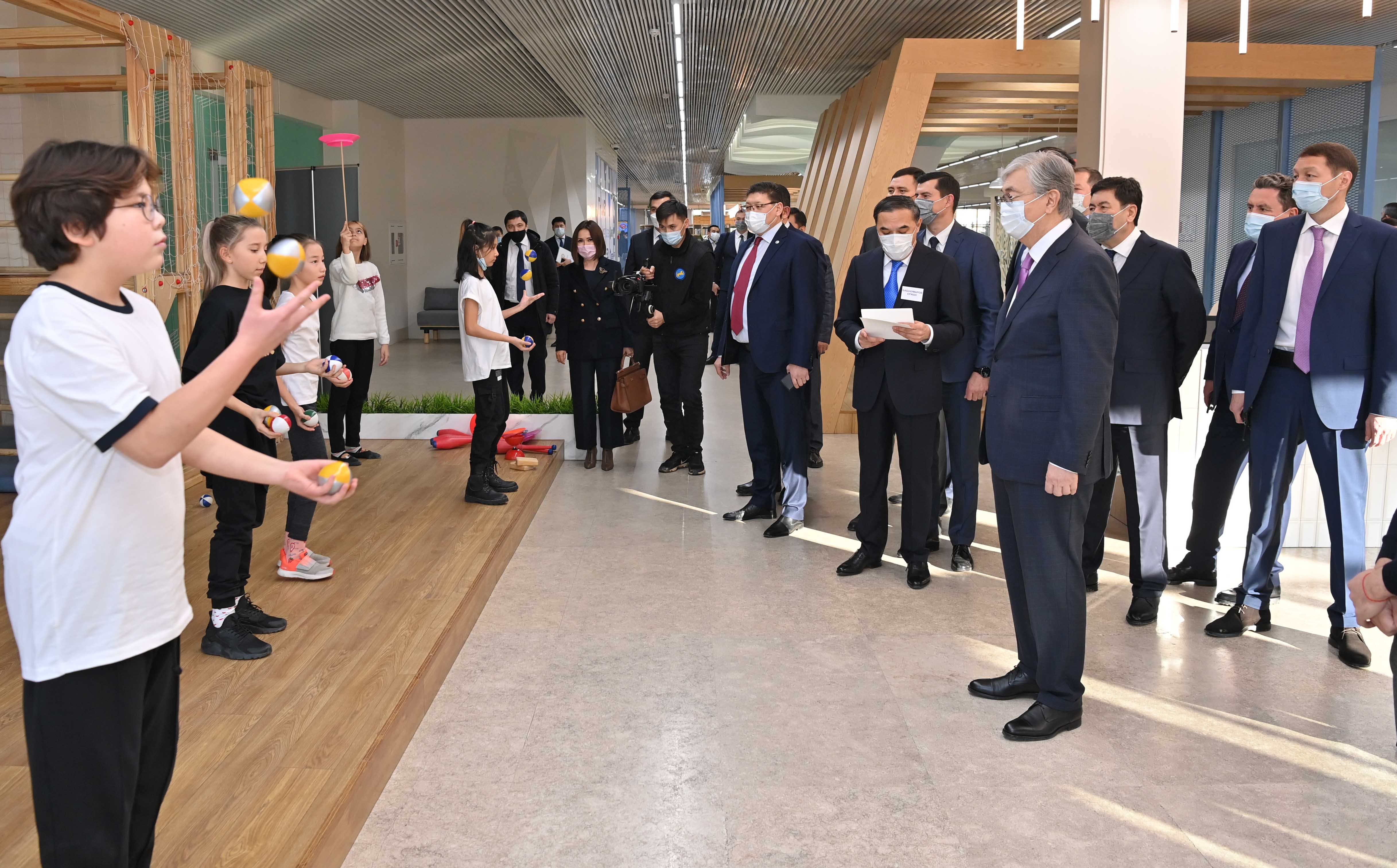 Президентке кітапхана, балалардың ойын алаңы, вокал студиясы, IT зертхана, электр техникасы мен робот техникасы залдары, дәстүрлі музыкаға арналған мультимедия орталығы таныстырылды.