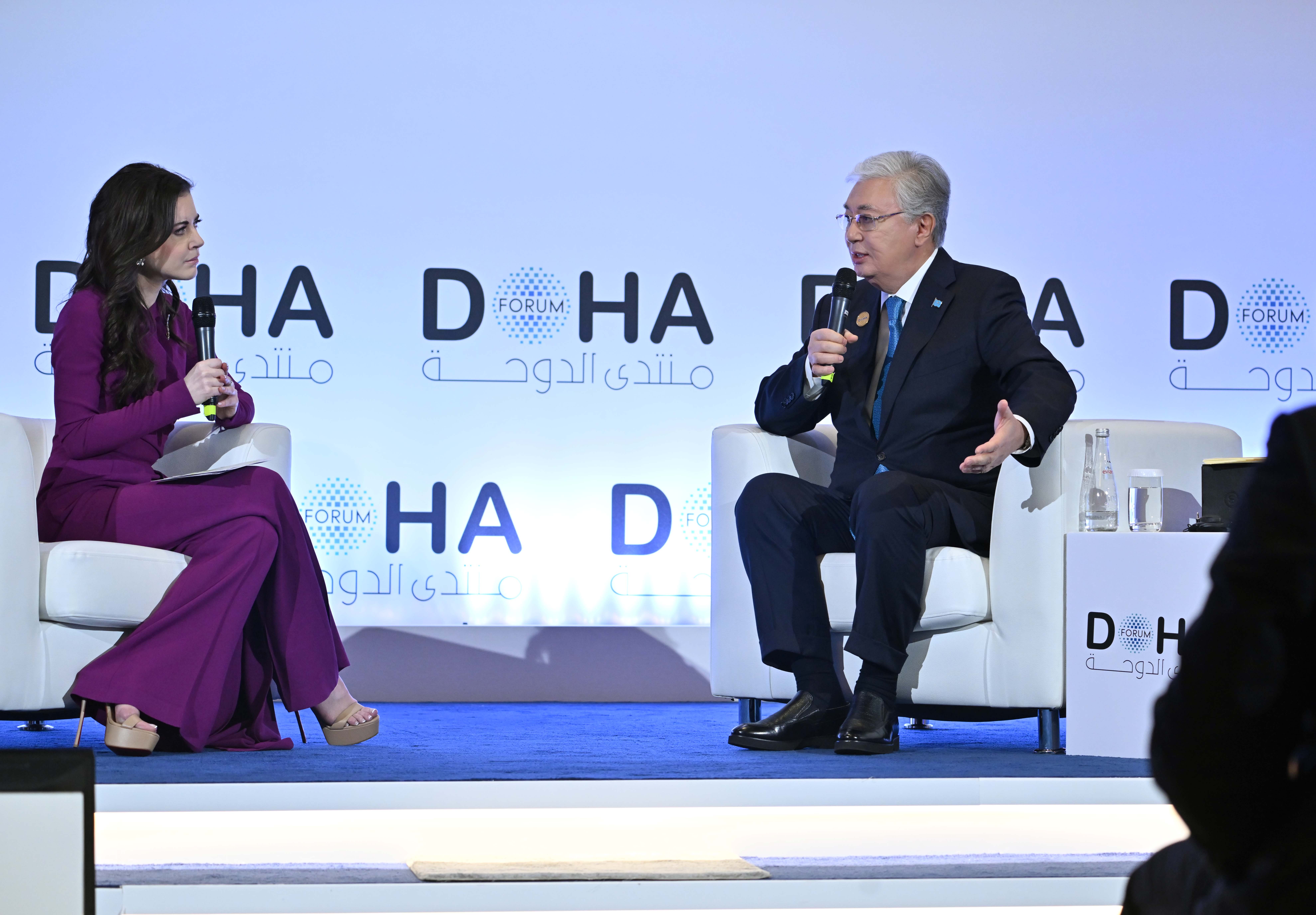 Президент Доха форумының ашылу салтанатына мәртебелі мейман ретінде қатысты. 2003 жылдан бері ұйымдастырылып келе жатқан халықаралық жиын биыл «Диалог, дипломатия және алуантүрлілік» (Diplomacy, Dialogue and Diversity) тақырыбына арналды. Қатар астанасындағы айтулы іс-шарада геосаясат, экономикалық даму, жаңа технологиялар, жасанды интеллект, энергетика және азық-түлік қауіпсіздігі секілді өзекті мәселелер талқыланады, сондай-ақ қазіргі заманның негізгі проблемаларын шешуге бағытталған ұсыныс-пікірлер айтылады.