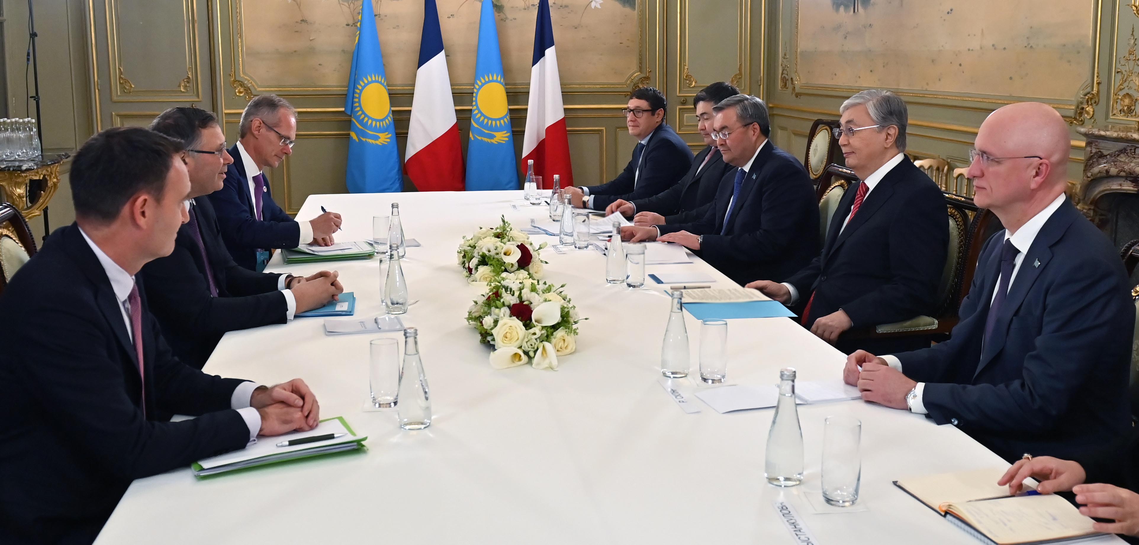 Мемлекет басшысы Францияның атом өнеркәсібі, энергетика, өнеркәсіптік газдарды өндіру, көлік және басқа да салалардағы ірі компанияларының басшыларымен екіжақты кездесулер өткізді.