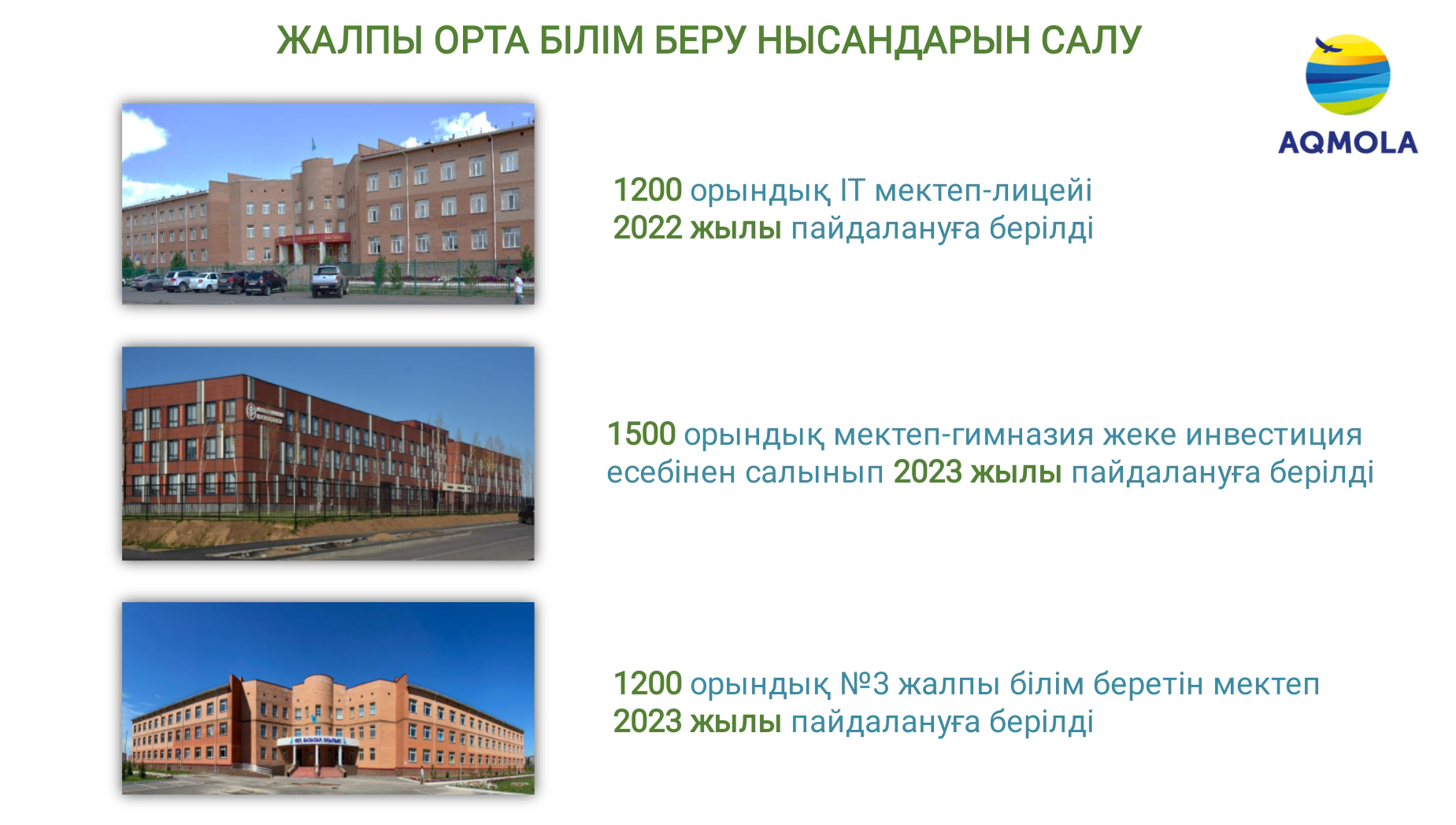 Соңғы екі жылда қалада үш мектеп пайдалануға берілді. Тағы бір мектеп құрылысы аяқталуға жақын. Алдағы уақытта «Жайлы мектеп» ұлттық жобасы аясында үш білім ошағын, сондай-ақ екі балабақша салу көзделген.