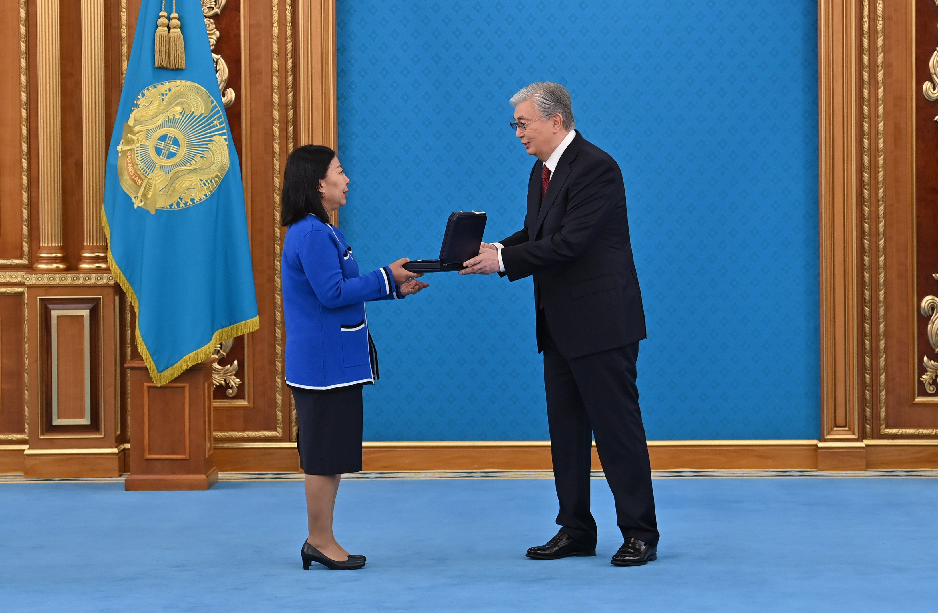 Бұдан кейін Президент мемлекеттік наградаларды табыстап, офицерлерге әскери және арнаулы атақтар, сыныптық шендер берді.