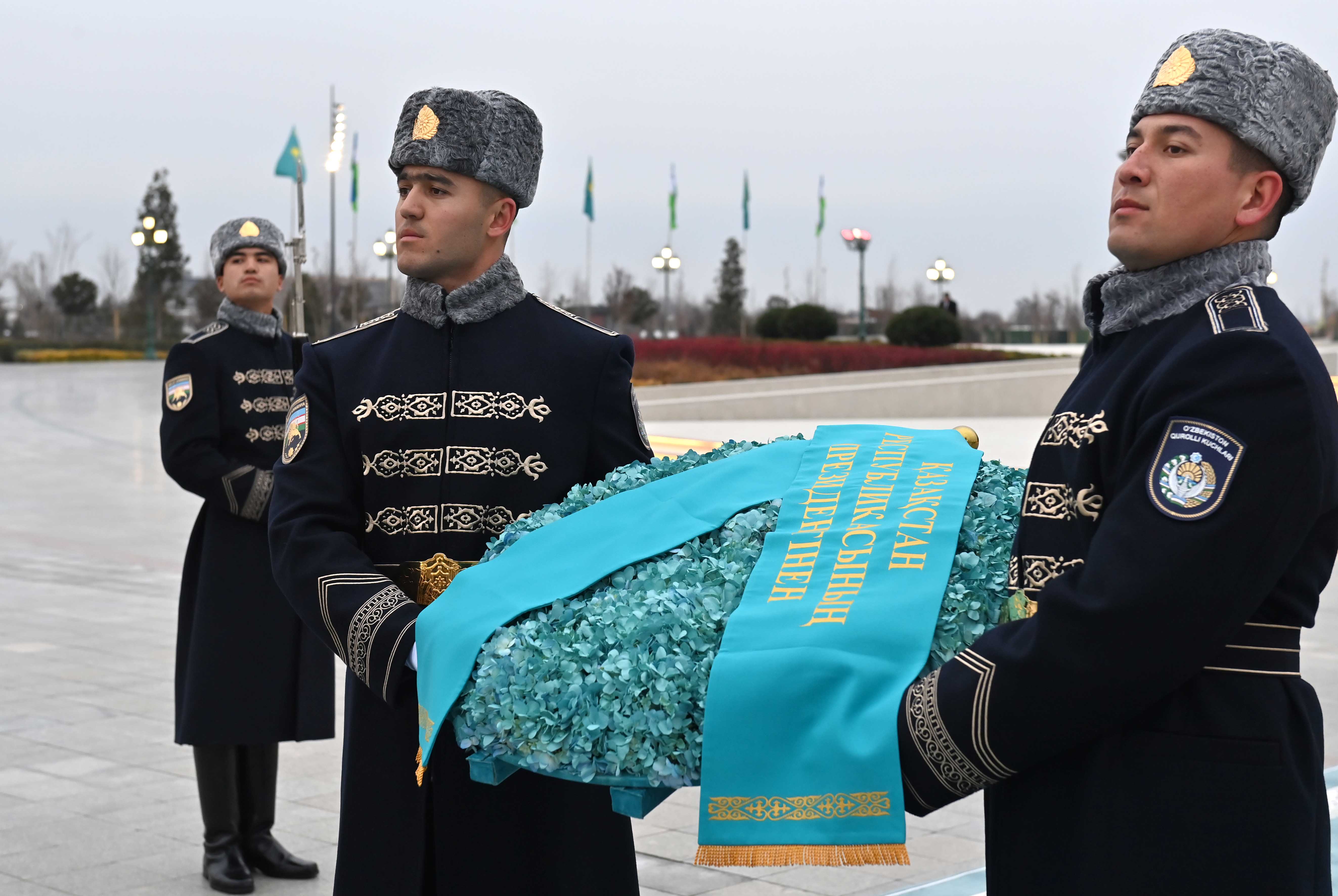 Өзбекстан Республикасы, Ташкент қаласы Президент Қасым-Жомарт Тоқаев Өзбекстанға мемлекеттік сапары барысында Ташкент қаласындағы Тәуелсіздік монументіне гүл шоғын қою рәсіміне қатысты. «Янги Узбекистон» саябағында орналасқан монумент былтыр осы ел Тәуелсіздігінің 30 жылдығына орай орнатылған. Ескерткіште өзбек халқының тарихындағы ең маңызды оқиғалар мен белгілі мемлекет қайраткерлерінің, қолбасшылары мен ғалымдарының бейнелері кескінделген.